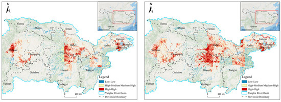 On the right side, the predicted expansion of the coupling areas (deep red) is mainly along the Anqing–Chizhou–Tongling–Wuhu corridor in the Wanjiang region. Although the Yangtze River Protection Law theoretically prohibits all fishing in the mainstream until 2030, it is allowed in non-mainstream waters. In practice, however, enforcing a strict one-person-one-rod policy remains a challenge.