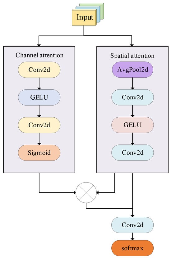 The original Global Average Pooling (GAP) mechanism is widely used in CNNs to reduce parameter count, enhance feature abstraction, and prevent overfitting. However, it suffers from insufficient sensitivity to spatial details. This paper proposes replacing GAP with a spatial-channel dual-attention gating mechanism to improve model localization capability for small targets in complex backgrounds. By introducing spatial attention to strengthen geometric pattern recognition and channel attention to boost feature discriminability in occluded environments, this mechanism enhances both detection precision and robustness. FocalModulation transforms the conventional attention paradigm by a three-stage process of “focal contextualization-gated aggregation-affine transformation.” In contrast to the comprehensive connectivity of the self-attention mechanism, FocalModulation initially employs multi-scale deep convolution (focal_level hierarchy) to extract contextual features from local details to global semantics, thereby creating a pyramidal multi-granularity representation. Subsequently, it achieves adaptive fusion of cross-scale features via DynamicGateGenerator, which produces soft selection weights informed by a spatial-channel dual-attention mechanism, allowing the model to concentrate on contextual features. Employ a dual-attention mechanism to produce soft selection weights, enabling the model to concentrate on critical regions; ultimately, the adjusted context is integrated into the original features via element-wise affine transformation to attain a balance between computational efficiency and modeling proficiency. This method eliminates the computational barrier associated with Q-K-V interaction, preserves the modeling capacity for orientation sensitivity to spinning objects, and decreases graphics memory use. This work presents the novel implementation of spatial-channel dual-attention gating inside the core module of FocalModulation for marine life detection applications. In contrast to the global average pooling gating of the original scheme, the enhanced DynamicGateGenerator realizes three improvements via parallel spatial attention branching (3 × 3 convolution for local geometric pattern recognition) and channel attention branching (adaptive rescaling for semantic weight calibration): (1) Spatial attention enhances the localization precision of rotationally sensitive features, including crab body edges and cheliped orientations. (2) Channel attention improves the localization accuracy of these features via dynamic feature channels. Channel attention preserves feature discriminative capability in occlusion situations (e.g., when a crab’s body is obscured by fishing nets) via dynamic filtering of feature channels; (3) Softmax normalization is employed in the gating fusion phase rather than Sigmoid, allowing for competitive adjustment of multi-scale feature weights, which better aligns with actual fishery detection requirements. FocalModulation network results are presented in Figure 5, and the architecture of the DynamicGateGenerator network is depicted in Figure 6.