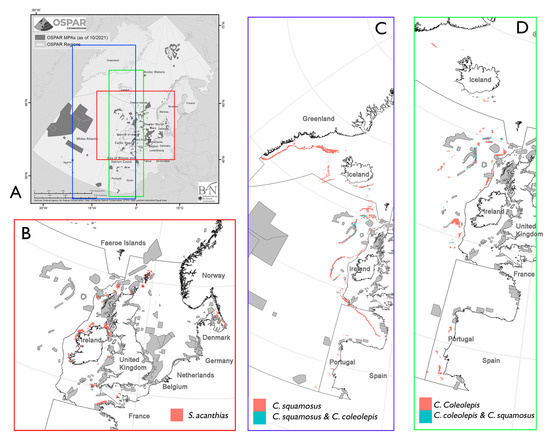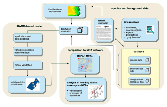 - Werner, T.; Hennicke, J. A Proposed Method to Evaulate the Extent to Which Critical Habitats of OSPAR T&D Species Are Covered by the OSPAR MPA Network: Annex 1. In Proceedings of the OSPAR Convention for the Protection of the Marine Environment of the North-East Atlantic—ICG-POSH Meeting, Edinburgh, UK, 21–23 November 2017. [Google Scholar]