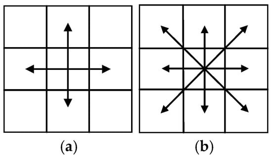 Unlike ground agricultural machinery operations, working boats in pond environments cannot touch or cross boundaries. Therefore, the grid-based representation of irregular pond boundaries can significantly affect the coverage of the planned path. As shown in Figure 4a, each vertex of the pond is connected to form the pond boundary, and the grids outside the connecting lines are considered obstacle areas. However, if the grids on the connecting lines are directly set as obstacle areas, the operation omission rate will greatly increase during actual feeding, failing to achieve precise feeding. Therefore, the grid center point discrimination method is used in this study to determine whether the grids on the boundary lines are obstacle areas. The gridded map is shown in Figure 4b, where the white area represents the water area that the feeding boat needs to cover during operations, and the green area represents the pond boundary and the obstacle areas.