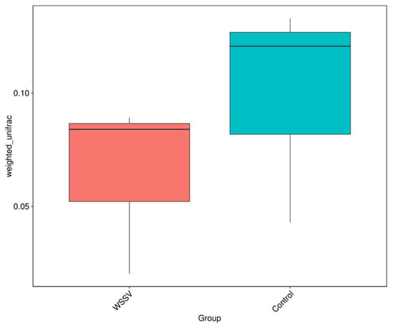 Beta diversity boxplot of intestinal samples from WSSV-infected and control P. monodon.