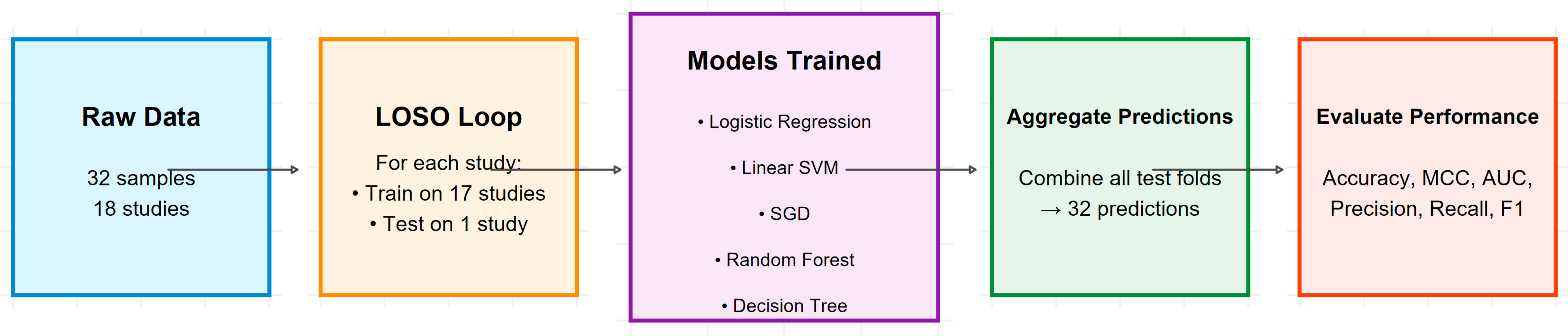 To address potential data leakage and provide a robust estimate of generalizability, model performance was evaluated using Leave-One-Study-Out (LOSO) cross-validation.