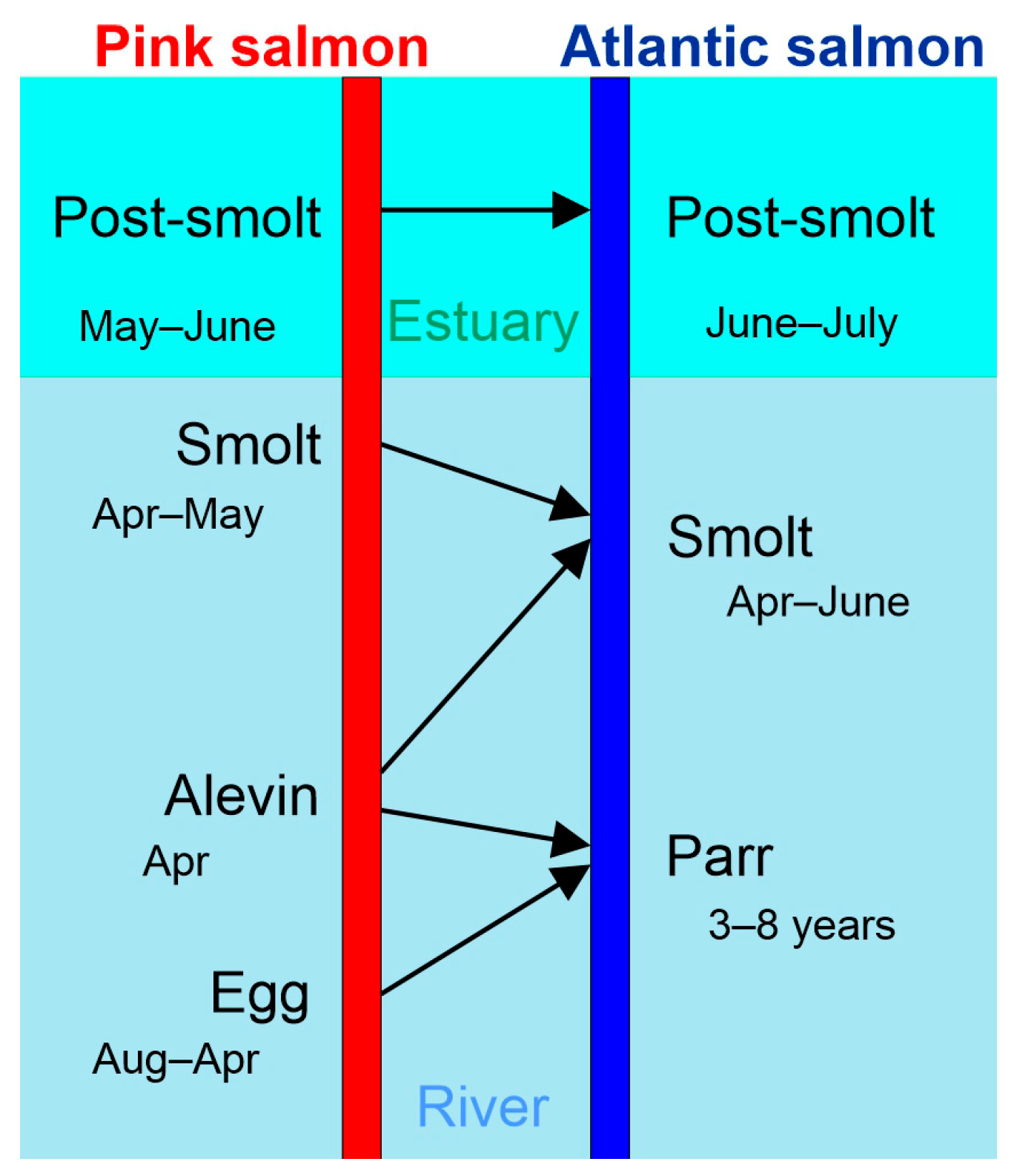 | Life Phase | Atlantic Salmon | Pink Salmon | References |