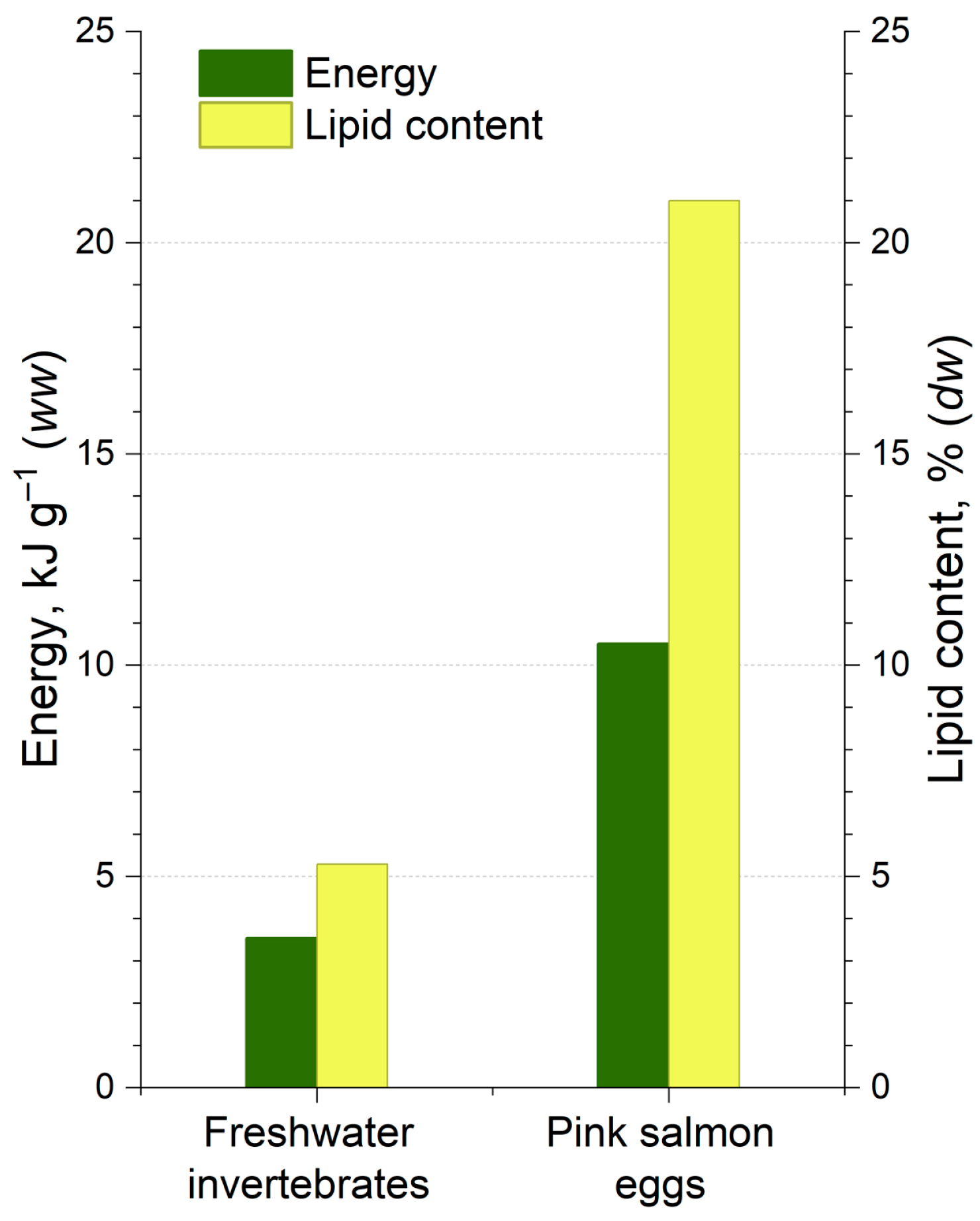 3.2. Pink Salmon Eggs Are Energy-Rich Food for Atlantic Salmon Parr