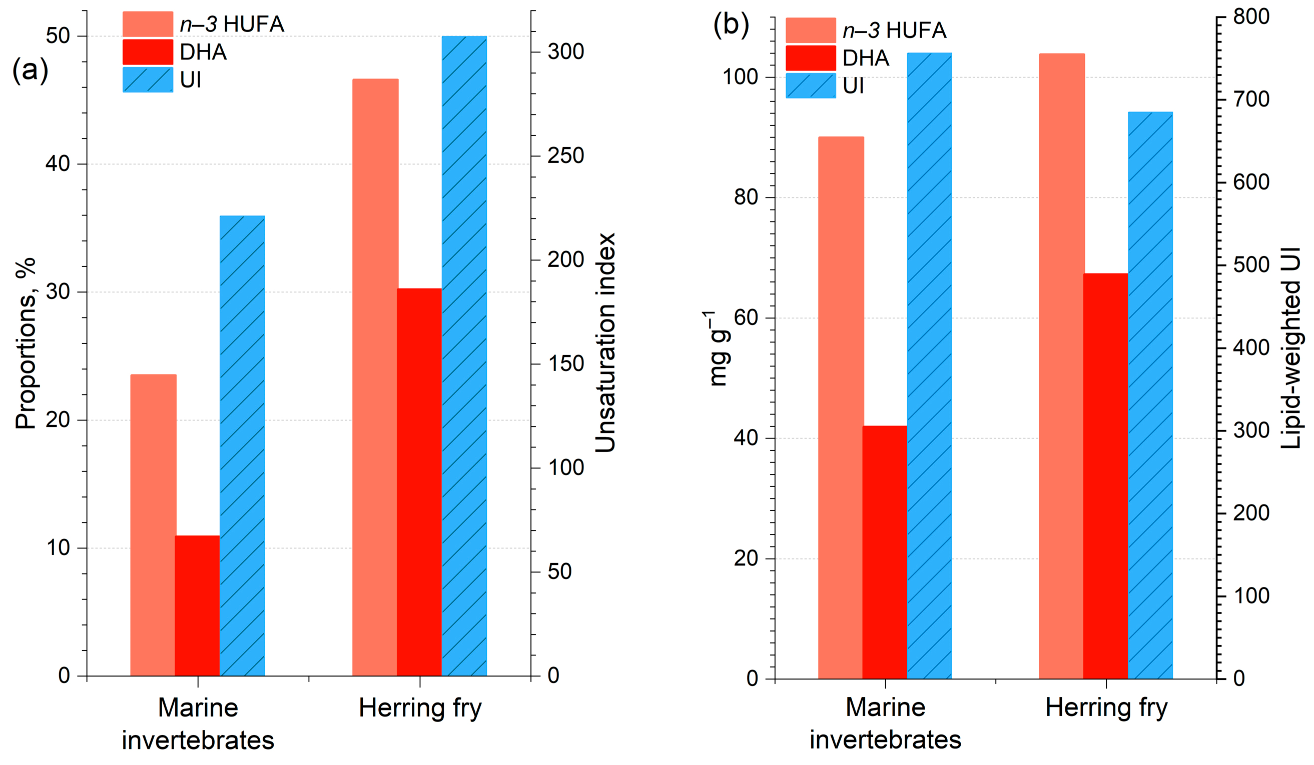 1.7. Invertebrates Are Lower in n–3 HUFAs than Marine Fish