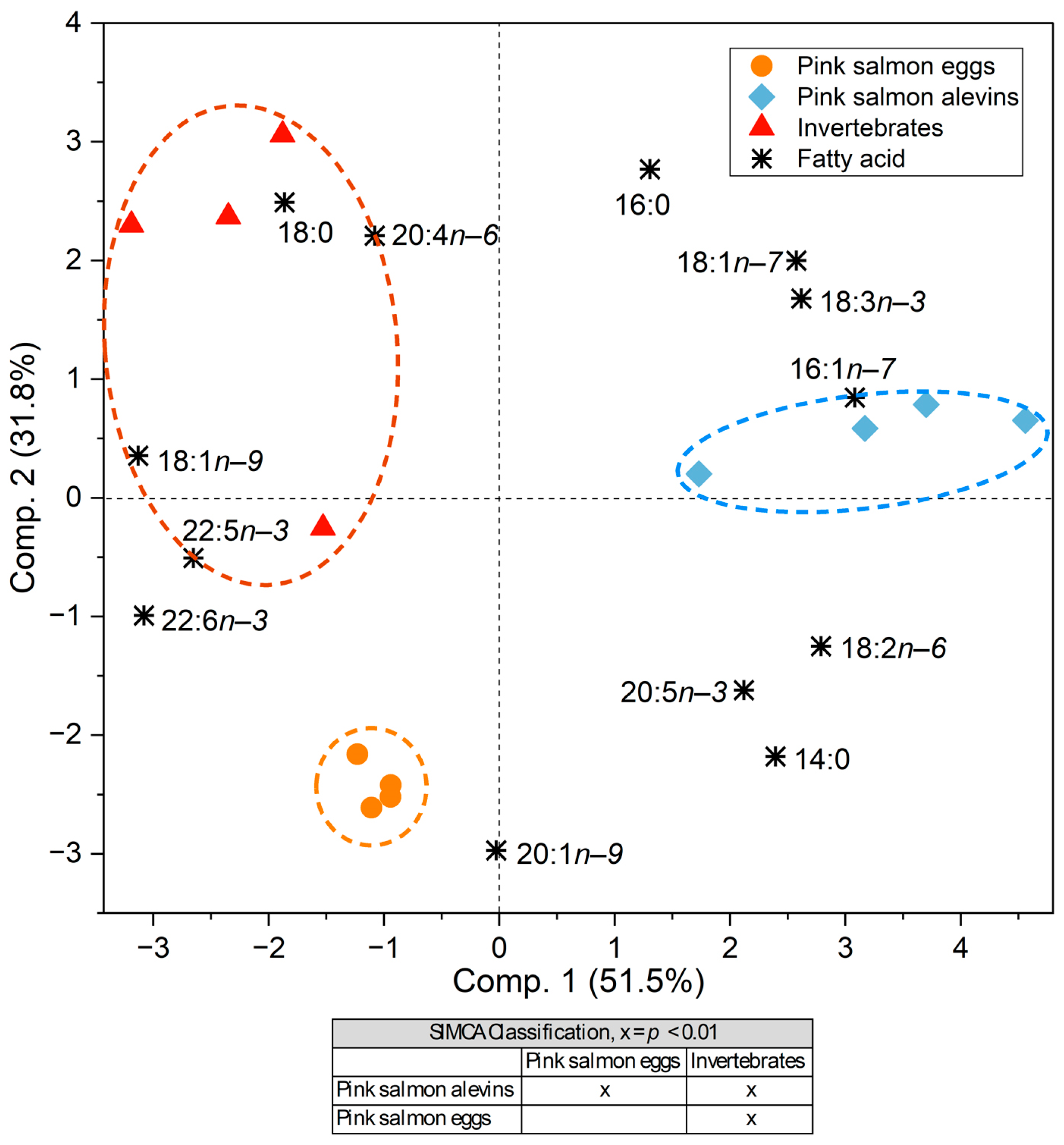 3.3. Pink Salmon Eggs and Alevins Provide Atlantic Salmon Parr and Smolts with an Excess of Marine Lipids