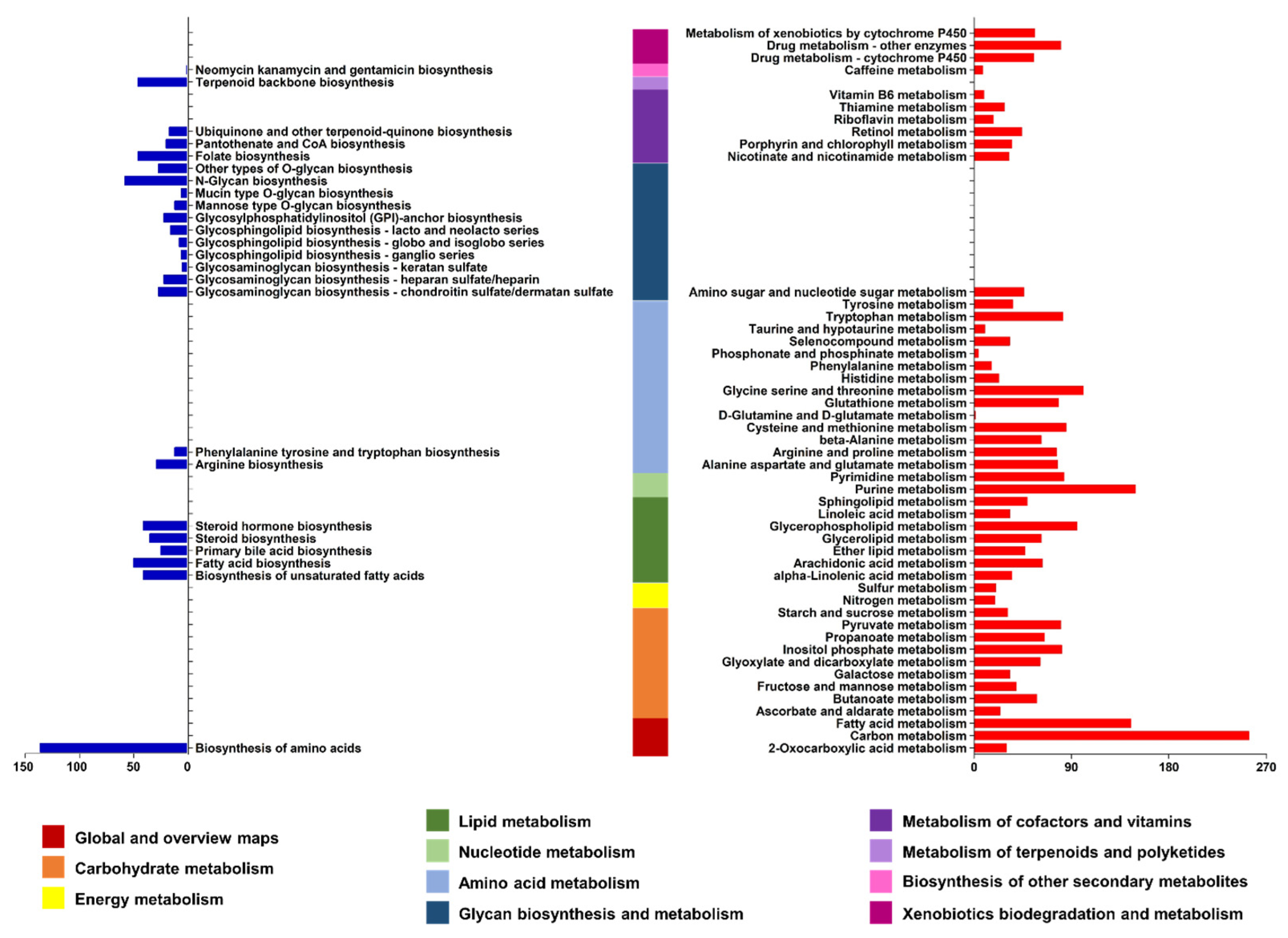 3.4. Identification of Genes Involved in Various Biosynthetic Pathways