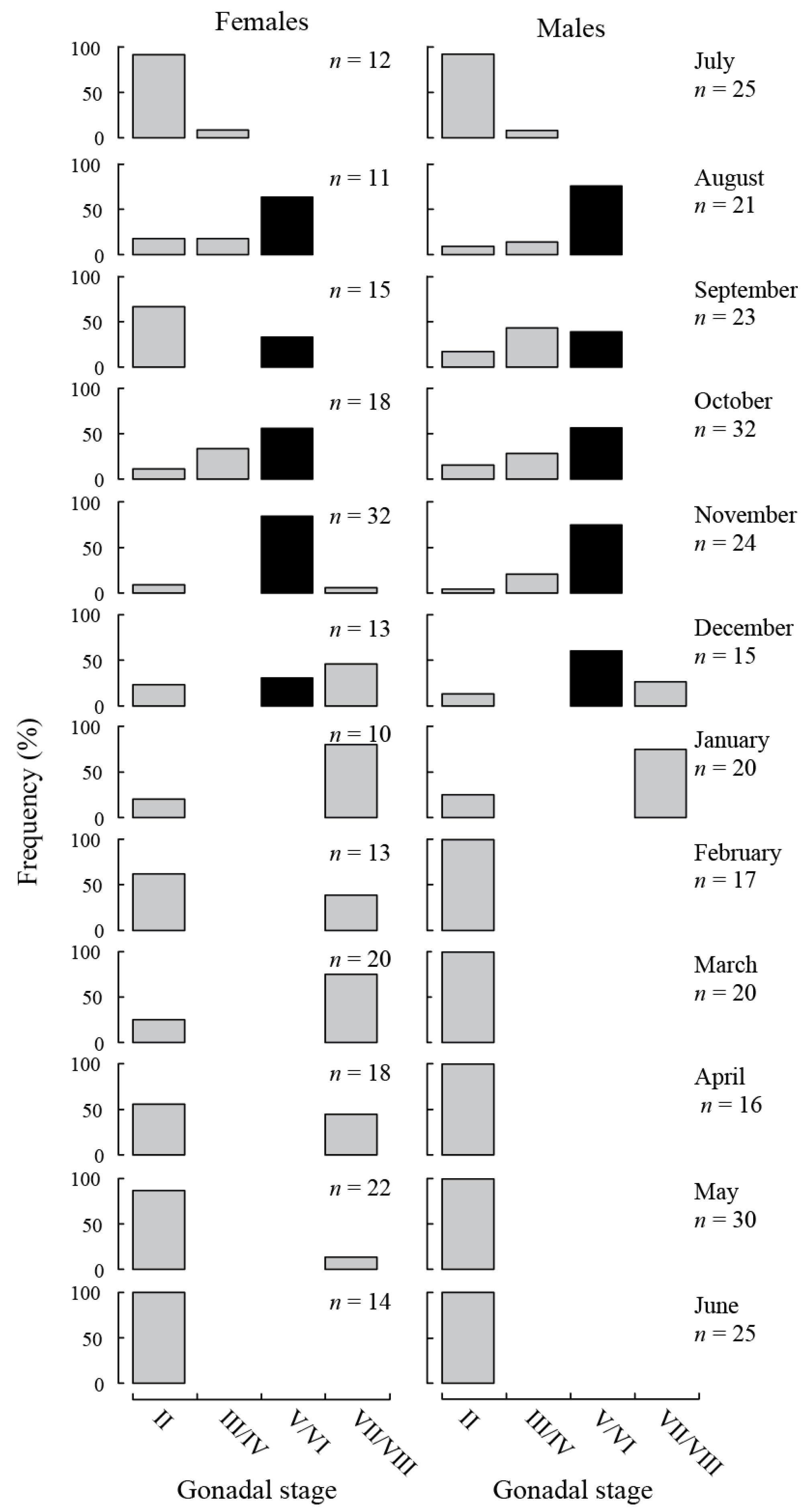 3.3. Evidence of Spawning Time and Duration