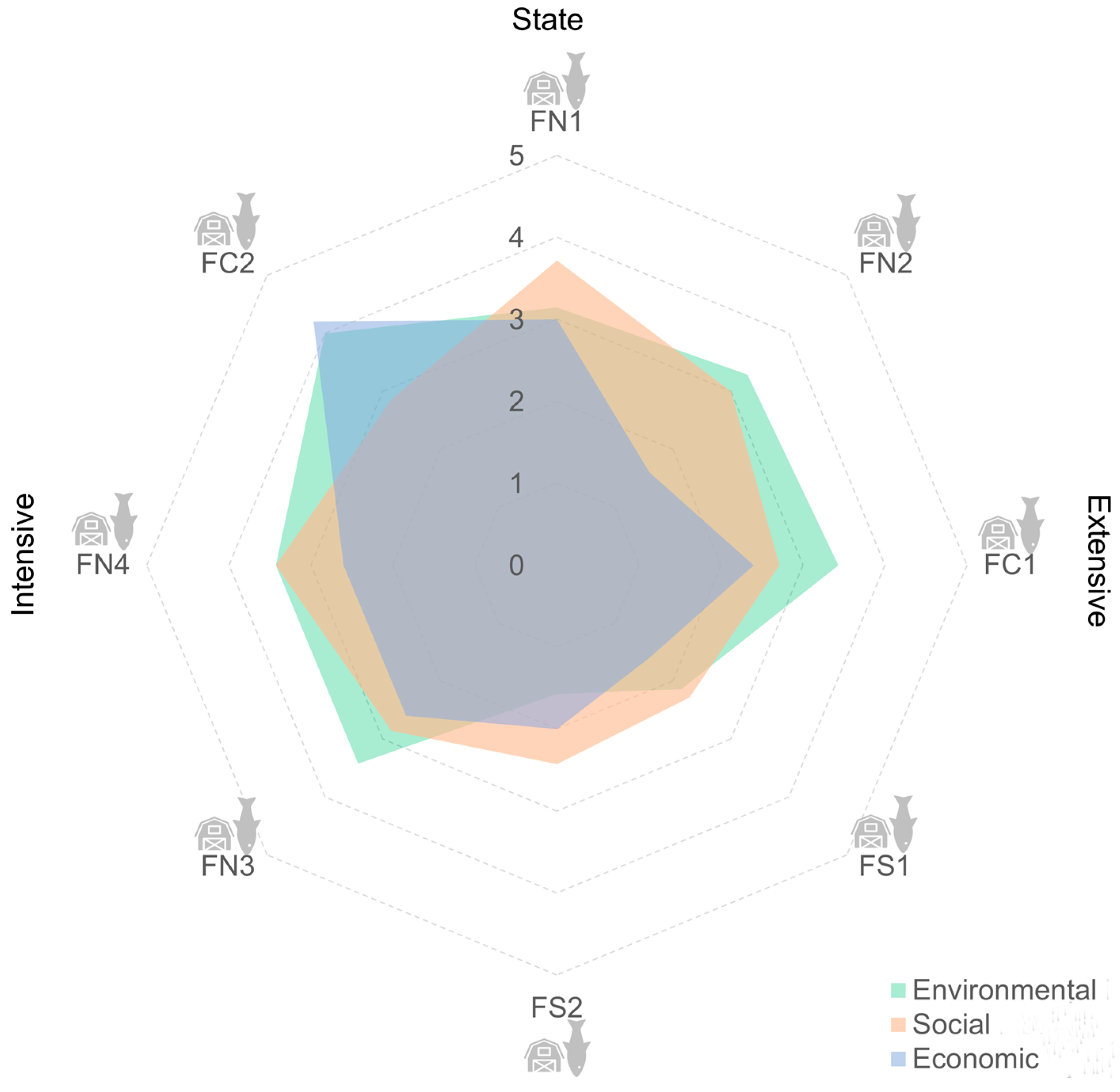 | FN1 | Urban | Inland | Intensive, aerated static ponds and raceways | State | National |