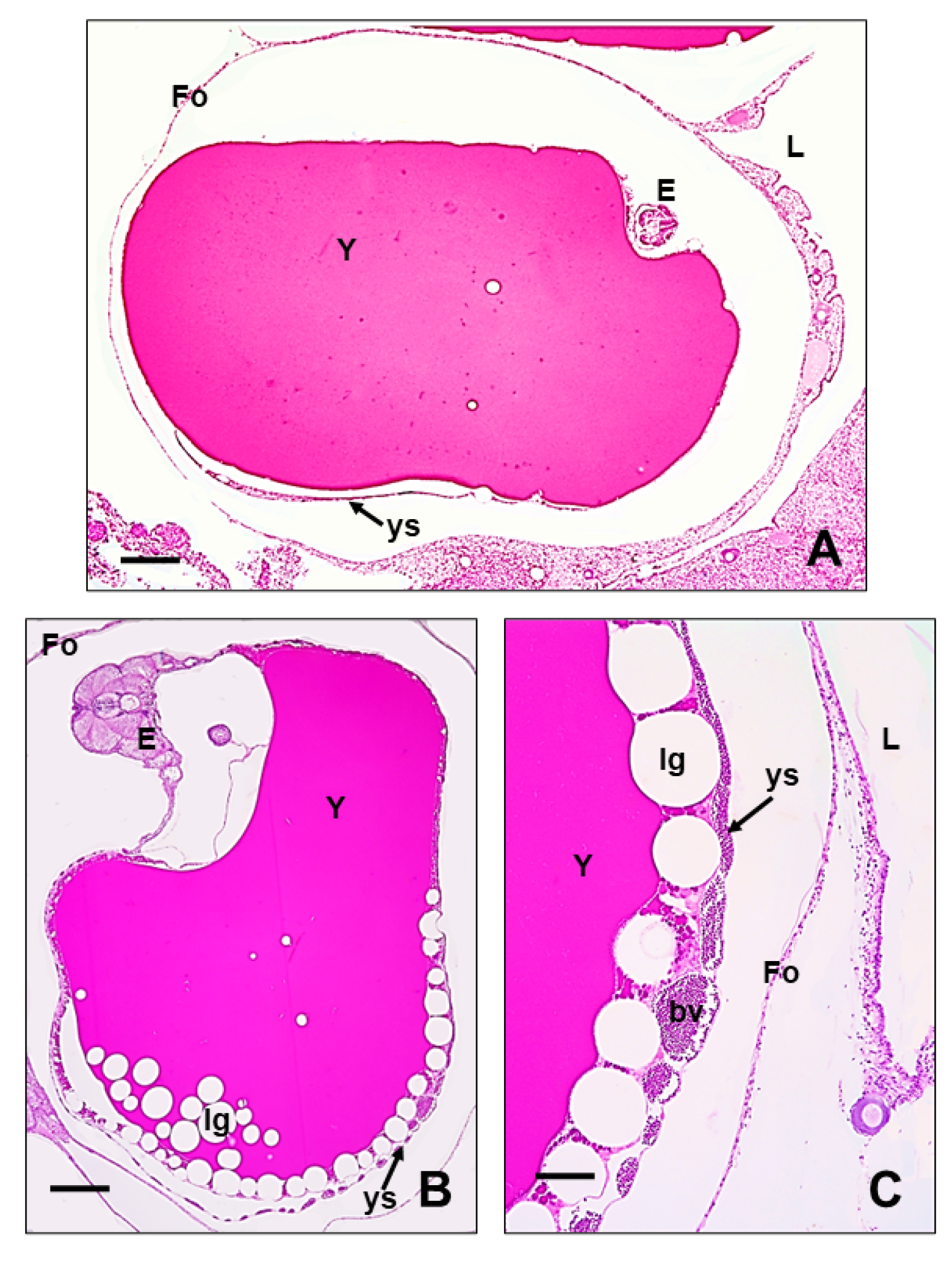 - Kuzmina, I. The yolk sac as the main organ in the early stages of animal embryonic development. Front. Physiol. 2023, 14, 1185286. [Google Scholar] [CrossRef]