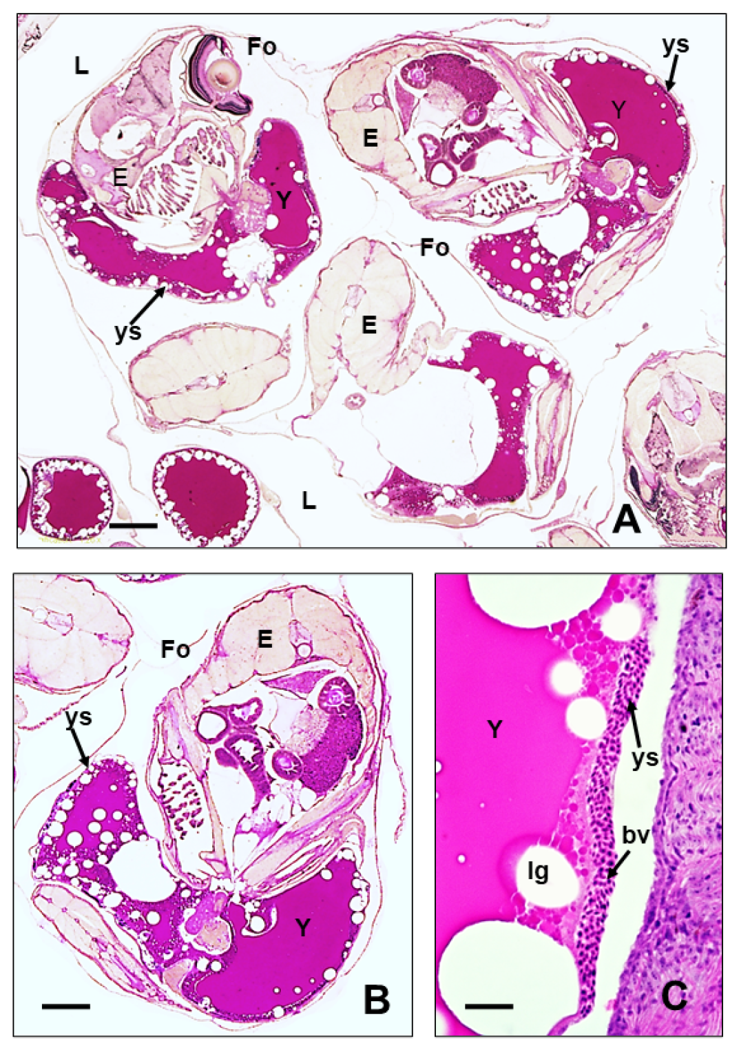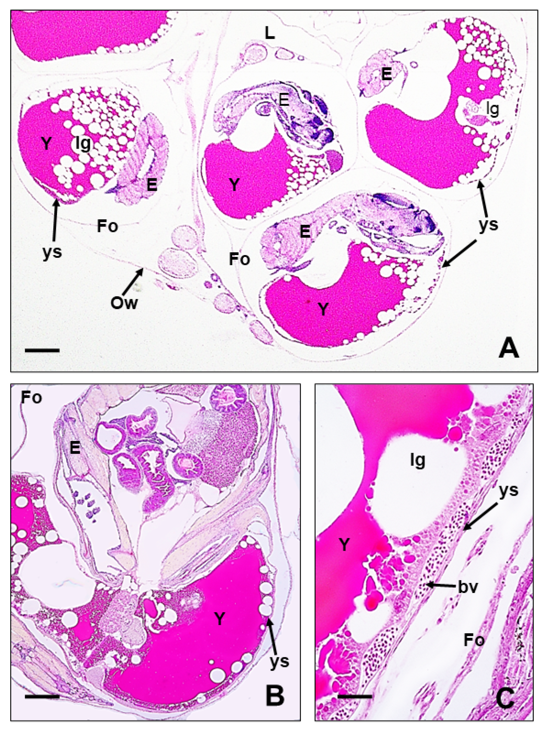 - Ponce de León, J.L.P.; Uribe, M.C. Morphology of yolk and pericardial sacs in lecithotrophic and matrotrophic nutrition in poeciliid fishes. J. Morphol. 2021, 282, 887–899. [Google Scholar] [CrossRef] [PubMed]