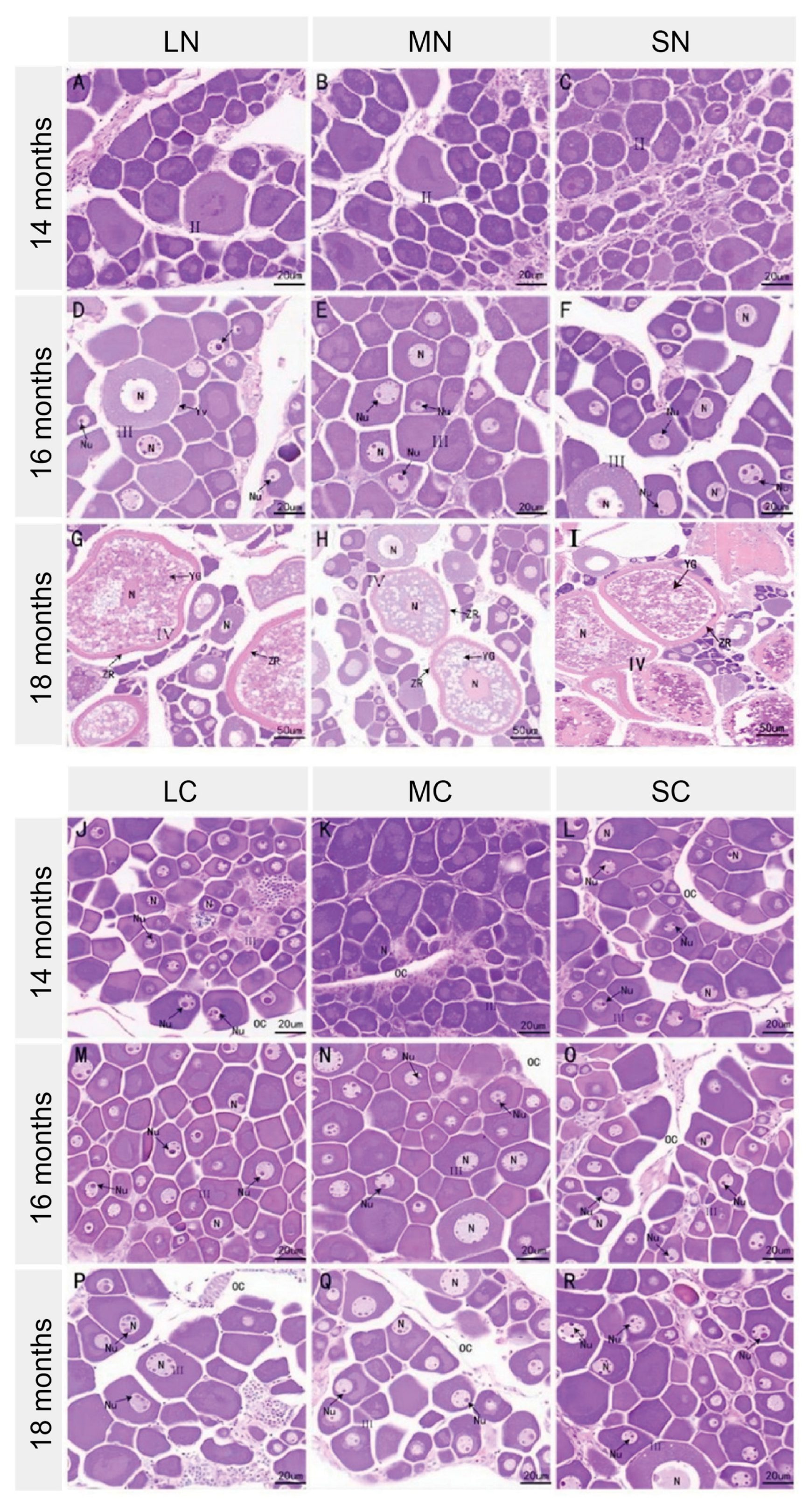 3.3. Histological Observation of Ovary Development in Broodstock Under Cage Culture