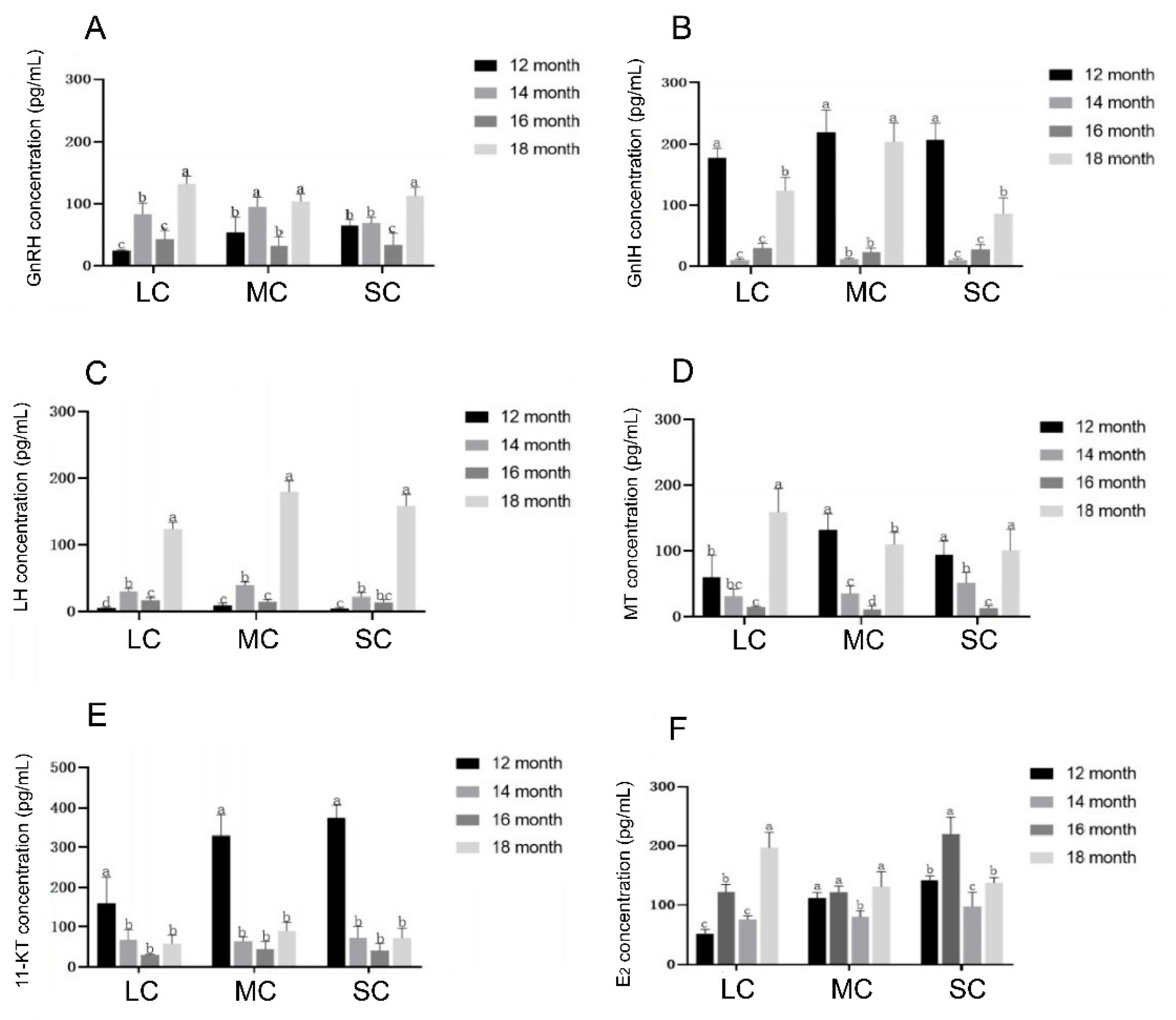 | 16 Month age | LC | 0.64 ± 0.12 a | 34.96 ± 0.74 a | 0.30 ± 0.03 a | 0.09 ± 0.06 a | 0.16 ± 0.03 a | 2.42 ± 0.21 | III |