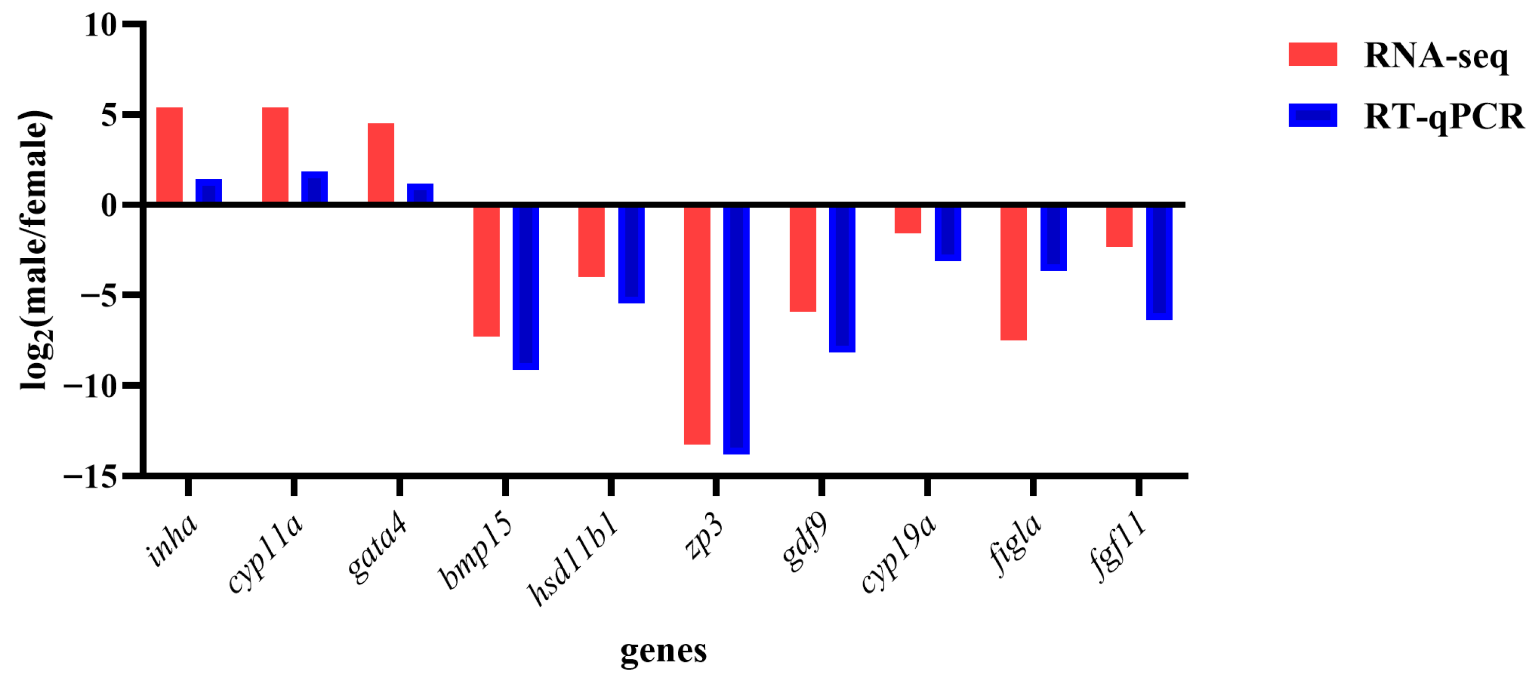 3.3. Transcriptomic Divergence Between Male and Female Gonads