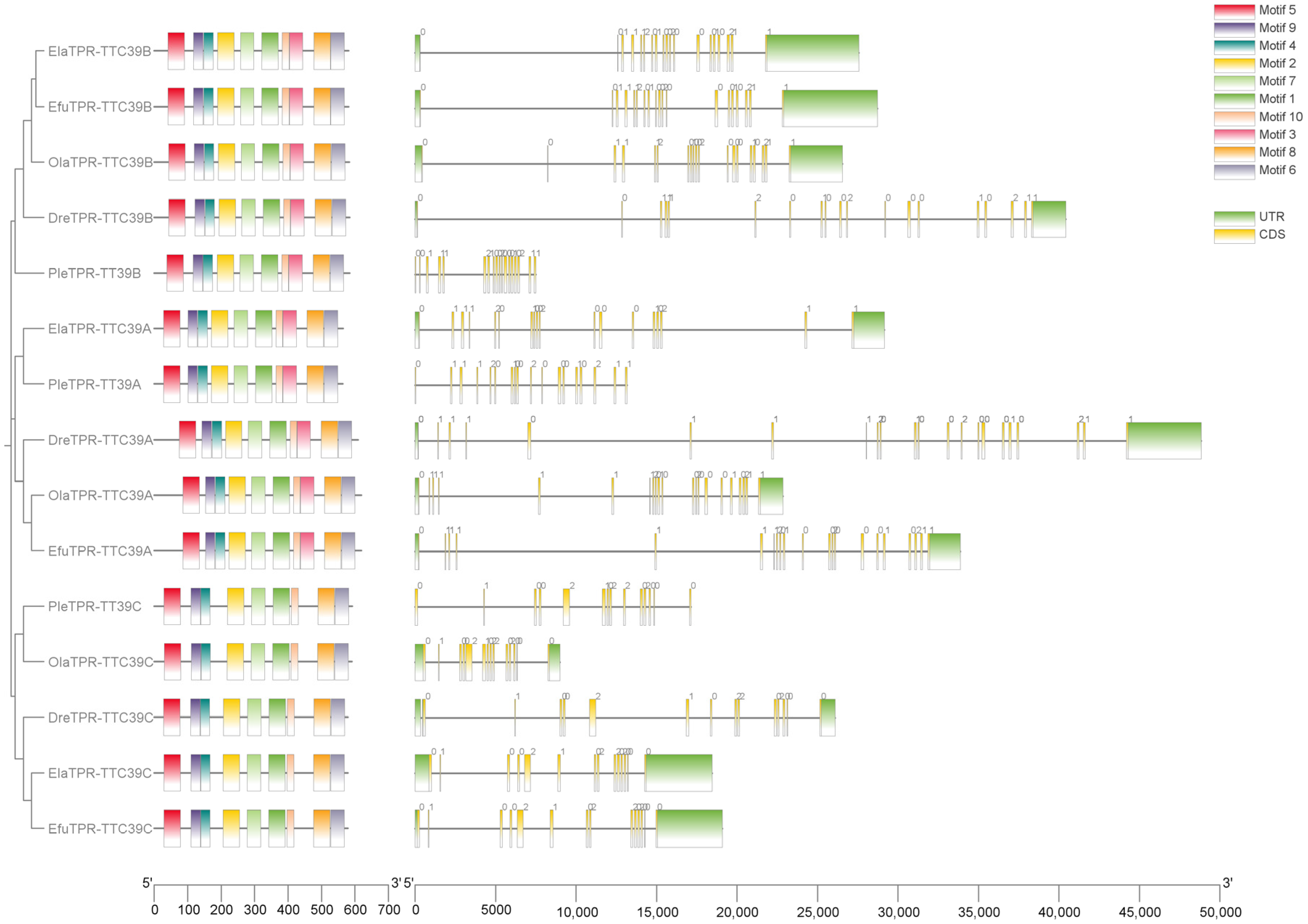 3.3. Conserved Motif and Structural Analysis of TTC39 Genes