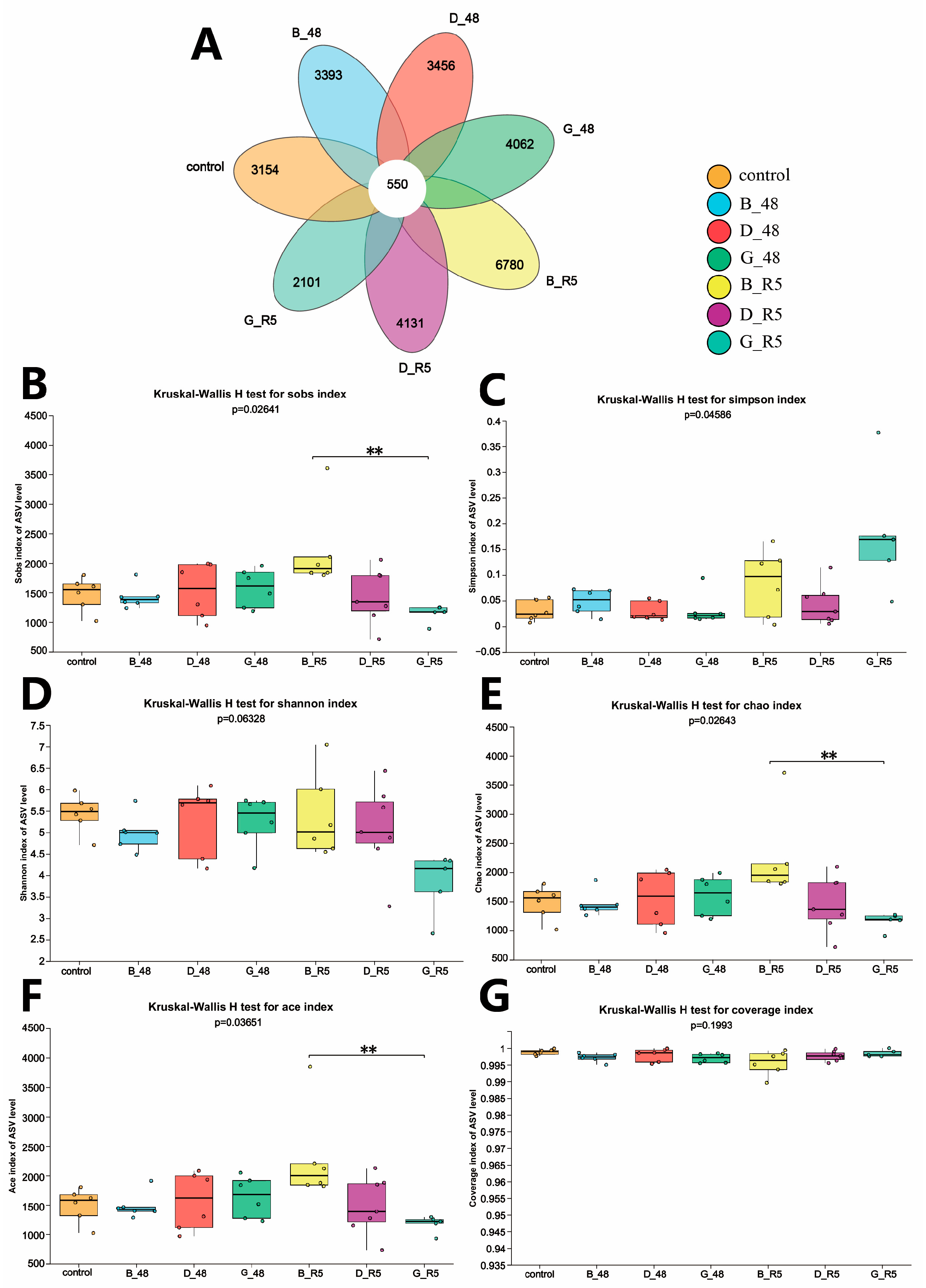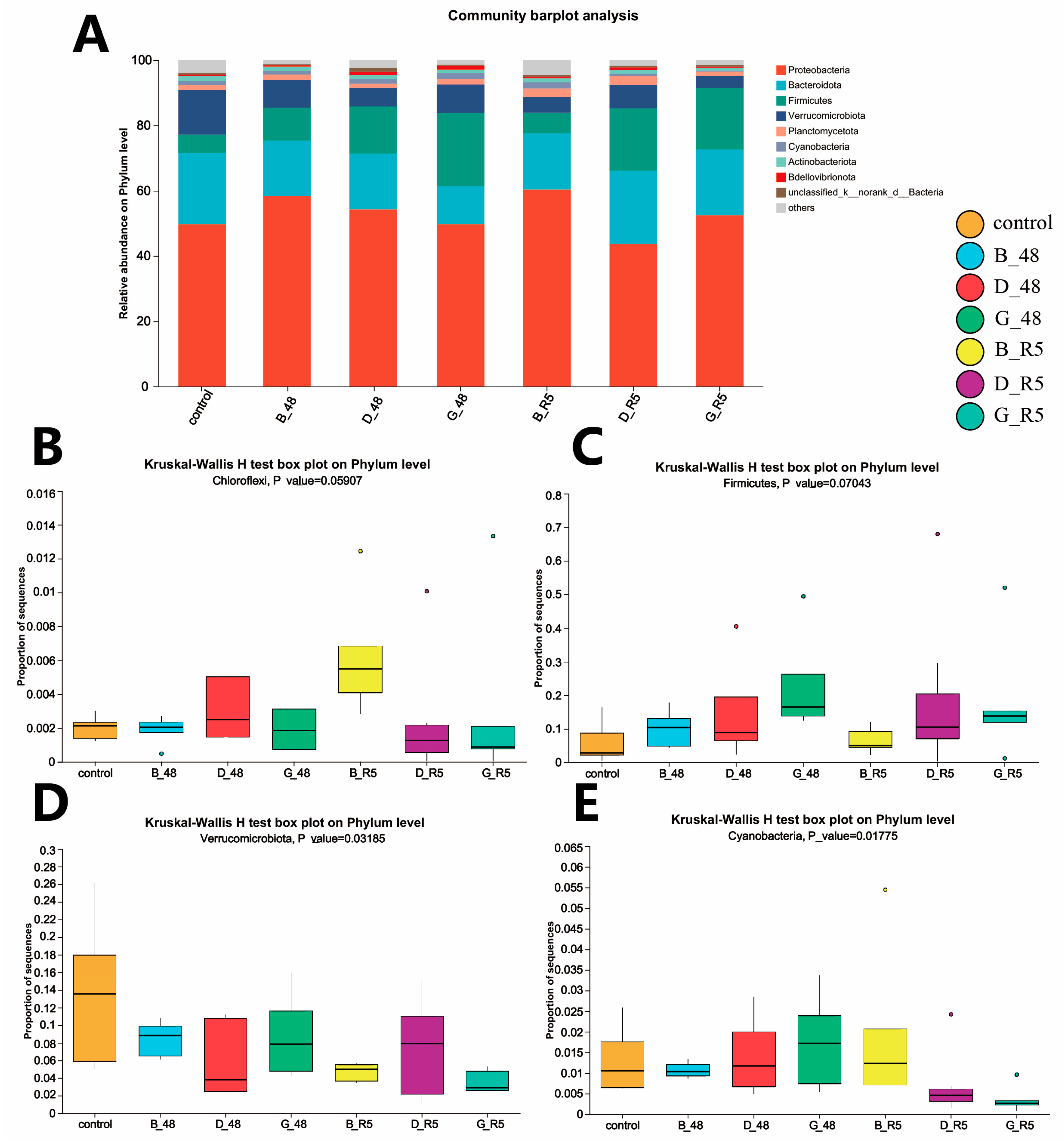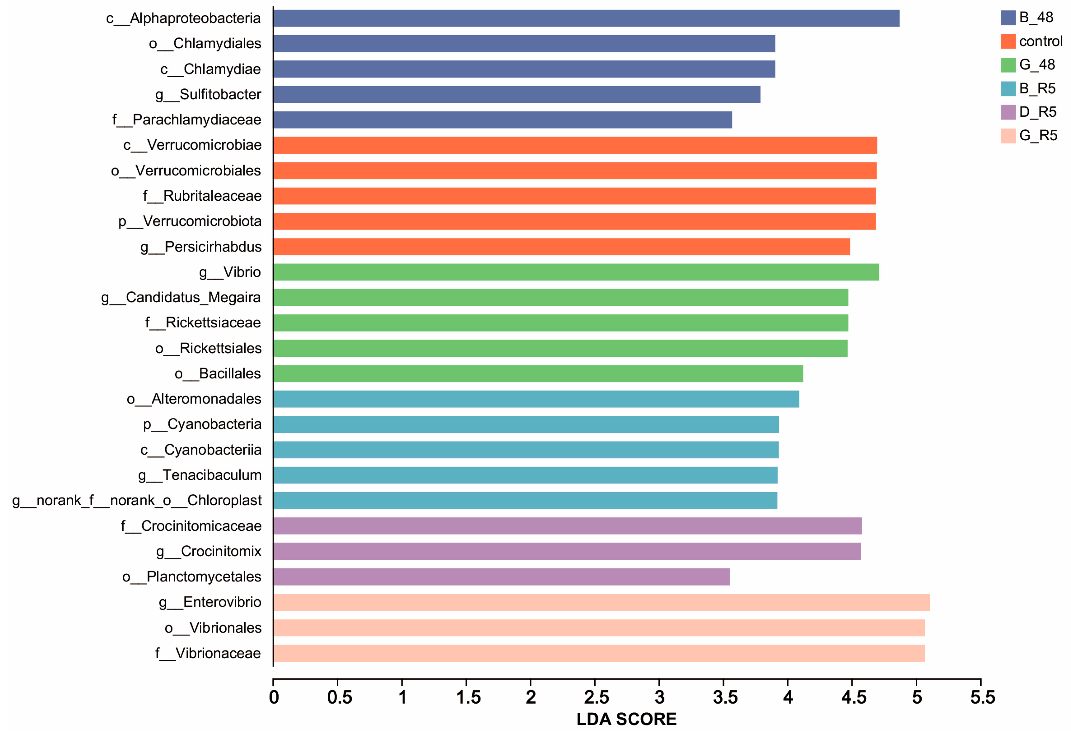 3.4. LEfSe Multi-Level Species Discriminant Analysis