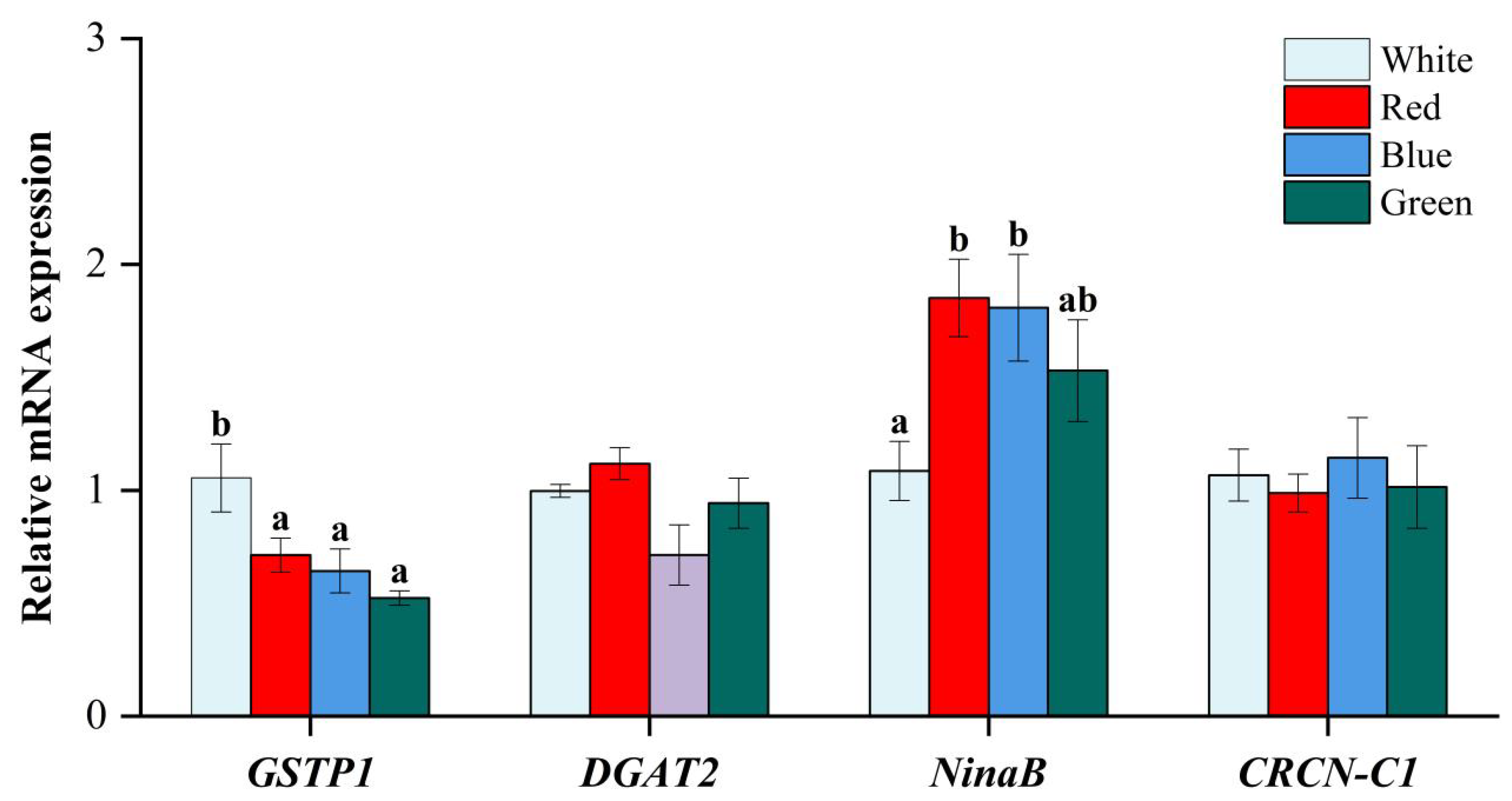 Chicago/Turabian StyleAi, Zhuozhuo, Zhigang Yang, Jianhua Ming, Lu Zhang, Xiaoru Chen, Zhiqiang Xu, Wuxiao Zhang, Aiming Wang, Hongyan Tian, Silei Xia, and et al. 2026. "Effects of Four Light Colors on Physiology, Antioxidant Enzyme Activity, Shell Pigmentation, and Genes Associated with Body Color Formation in Procambarus clarkii" Fishes 11, no. 1: 54. https://doi.org/10.3390/fishes11010054