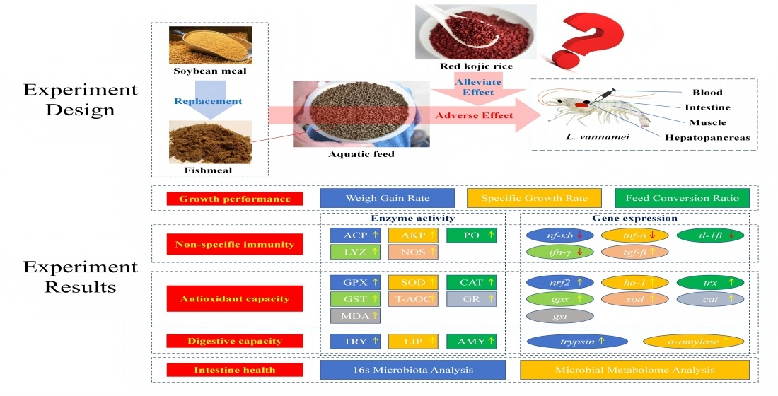 Therefore, it is highly necessary to conduct relevant research. In view of this, our research aims to investigate and evaluate the effects of RKR supplementation on growth performance, digestive enzyme activity, non-specific immunity, antioxidant capacity, and intestinal health of L. vannamei fed a diet with fishmeal replacement by soybean meal.