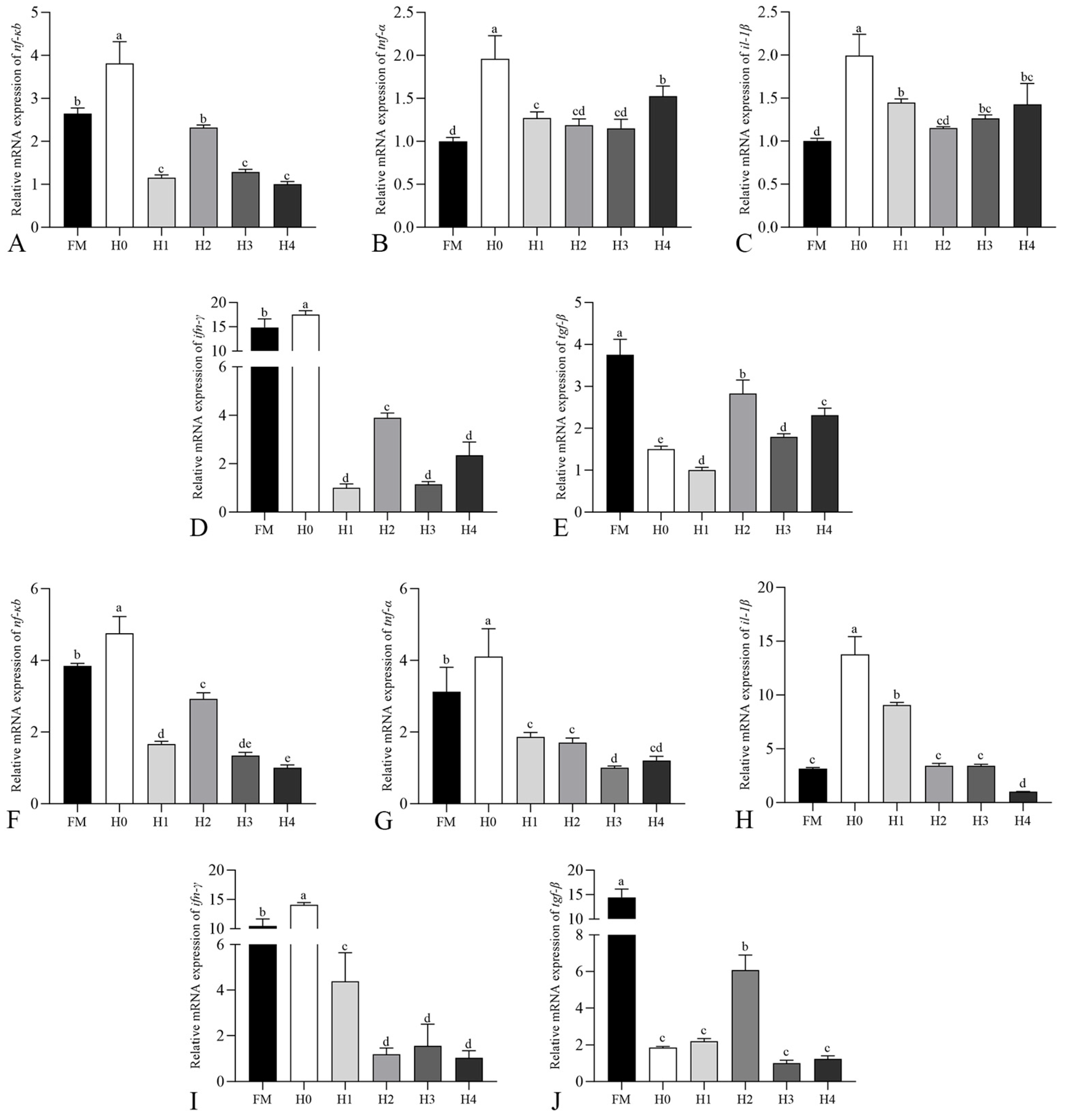 ifn-γ were significantly upregulated in the H0 group, while the anti-inflammatory cytokine