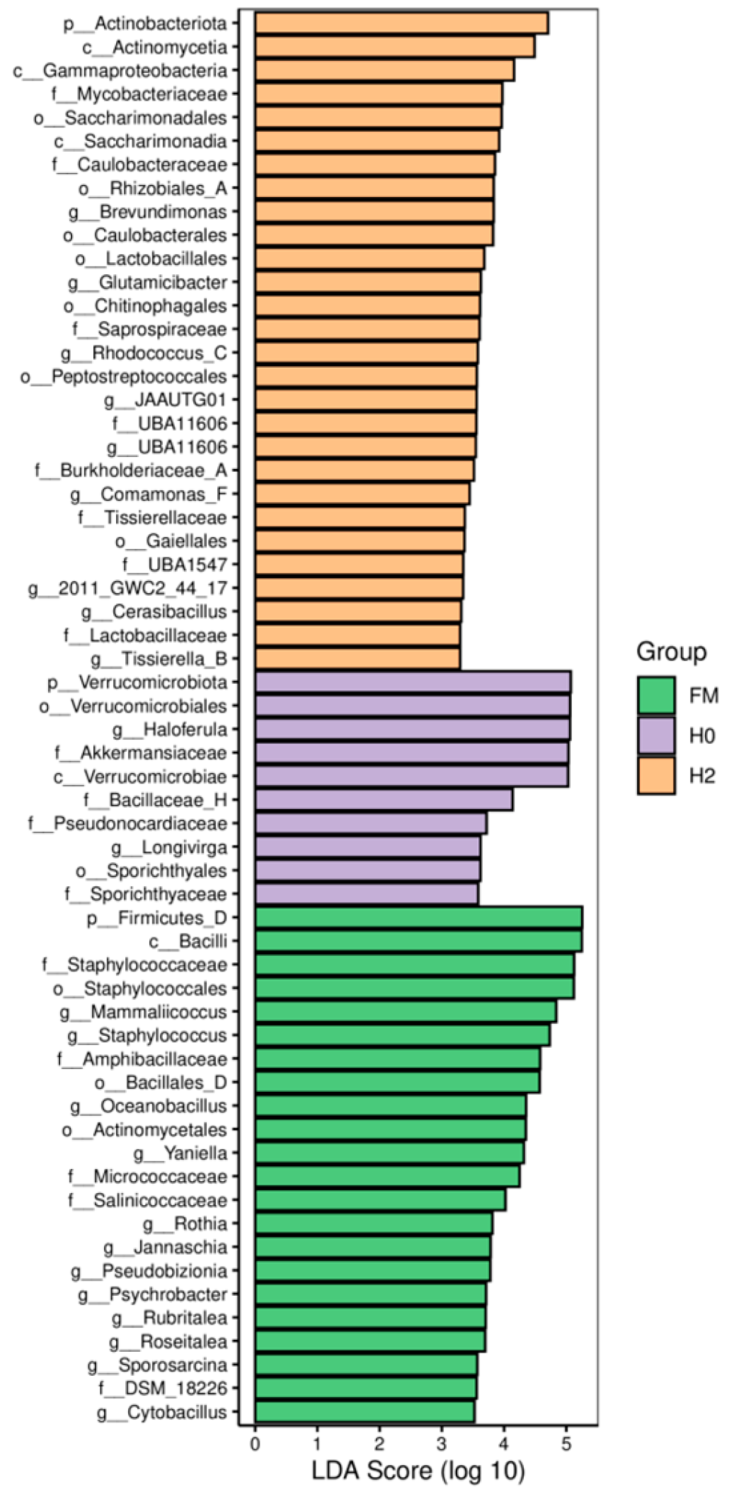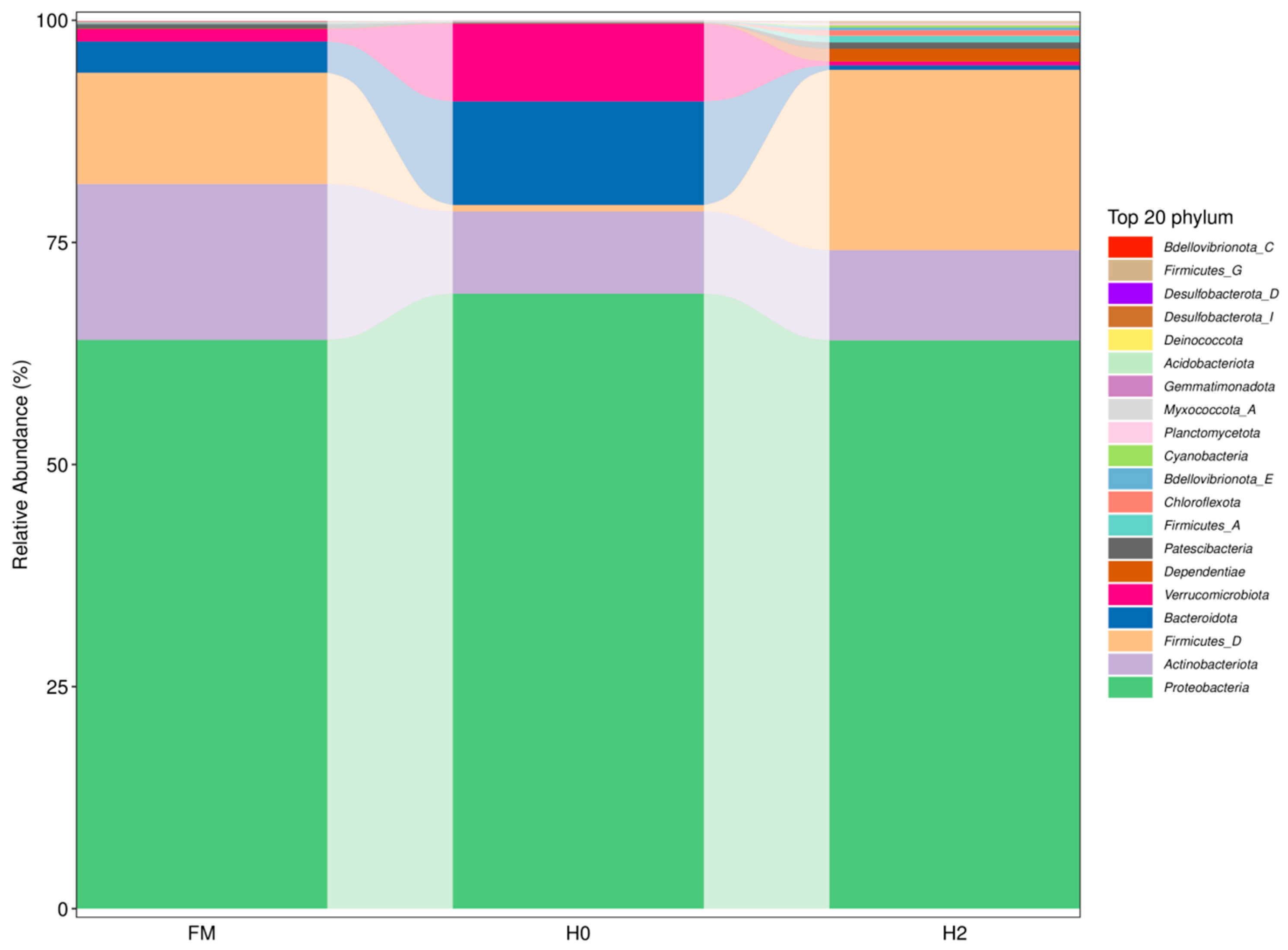 Rhodococcus_C in the H2 group was higher than that in the H0 group (