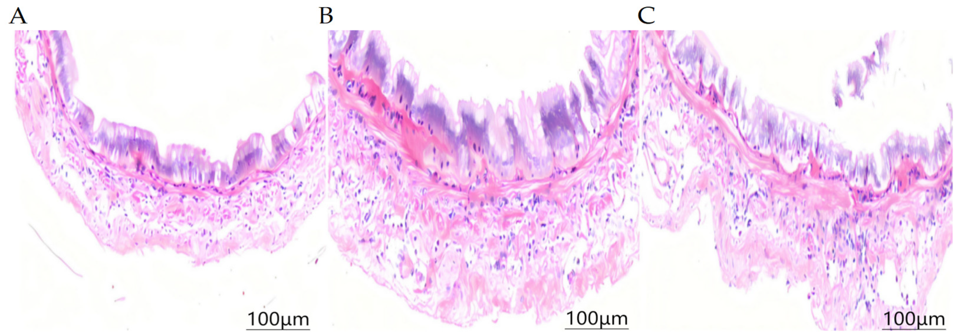 3.2. Effects of Different Application Methods on Intestinal Histomorphology of P. monodon