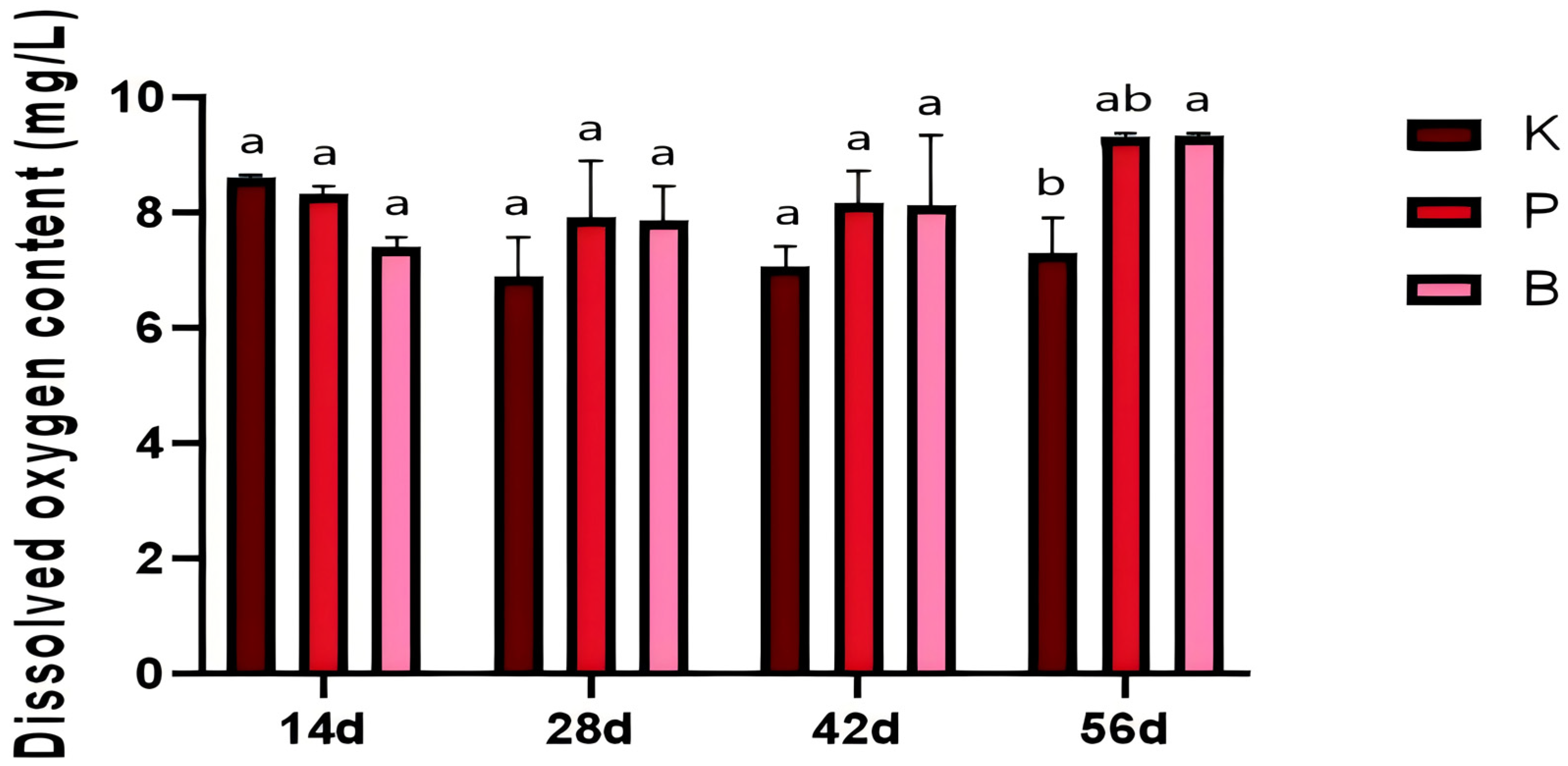 3.3. Effects of Different Application Methods on Rearing-Water Quality