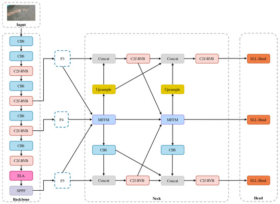 Overall network architecture of the proposed LMFF–YOLO model.