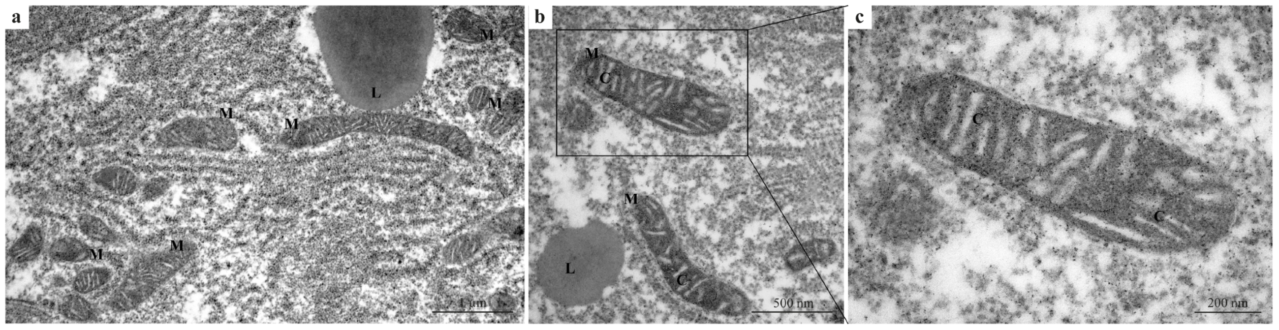 - Lam, J.; Katti, P.; Biete, M.; Mungai, M.; AshShareef, S.; Neikirk, K.; Lopez, E.G.; Vue, Z.; Christensen, T.A.; Beasley, H.K.; et al. A universal approach to analyzing transmission electron microscopy with ImageJ. Cells 2021, 10, 2177. [Google Scholar] [CrossRef] [PubMed]
