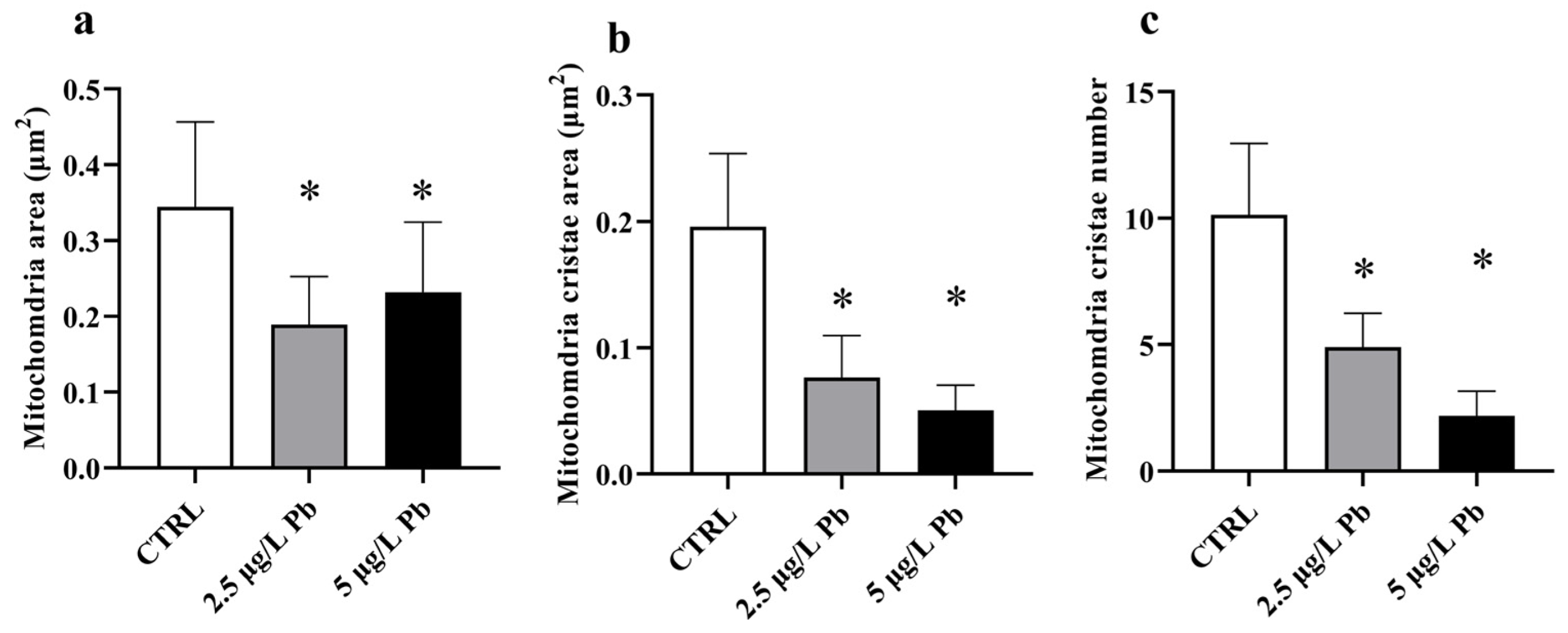 - Curcio, V.; Macirella, R.; Sesti, S.; Ahmed, A.I.M.; Talarico, F.; Tagarelli, A.; Mezzasalma, M.; Brunelli, E. Morphological and functional alterations induced by two ecologically relevant concentrations of Lead on Danio rerio gills. Int. J. Mol. Sci. 2022, 23, 9165. [Google Scholar] [CrossRef]