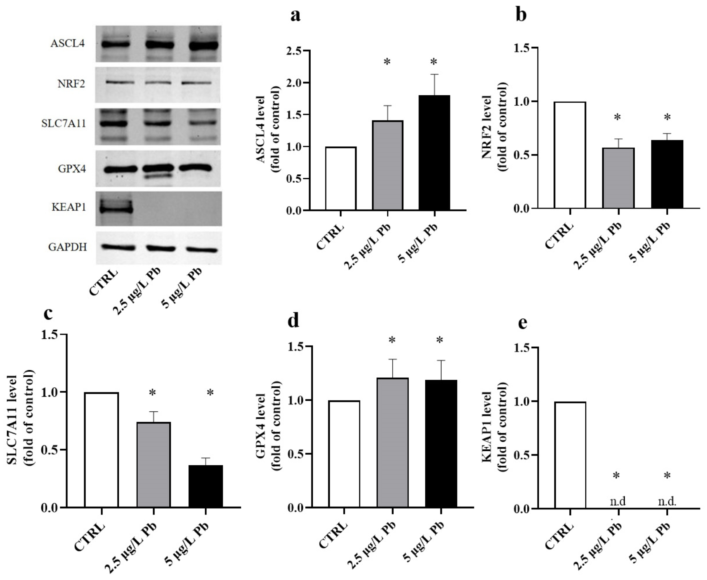 - Dey, K.K.; Mondal, P.; Chattopadhyay, A. Environmentally relevant lead alters nuclear integrity in erythrocytes and generates oxidative stress in liver of Anabas testudineus: Involvement of Nrf2-Keap1 regulation and expression of biomarker genes. J. Appl. Toxicol. 2024, 44, 260–271. [Google Scholar] [CrossRef]