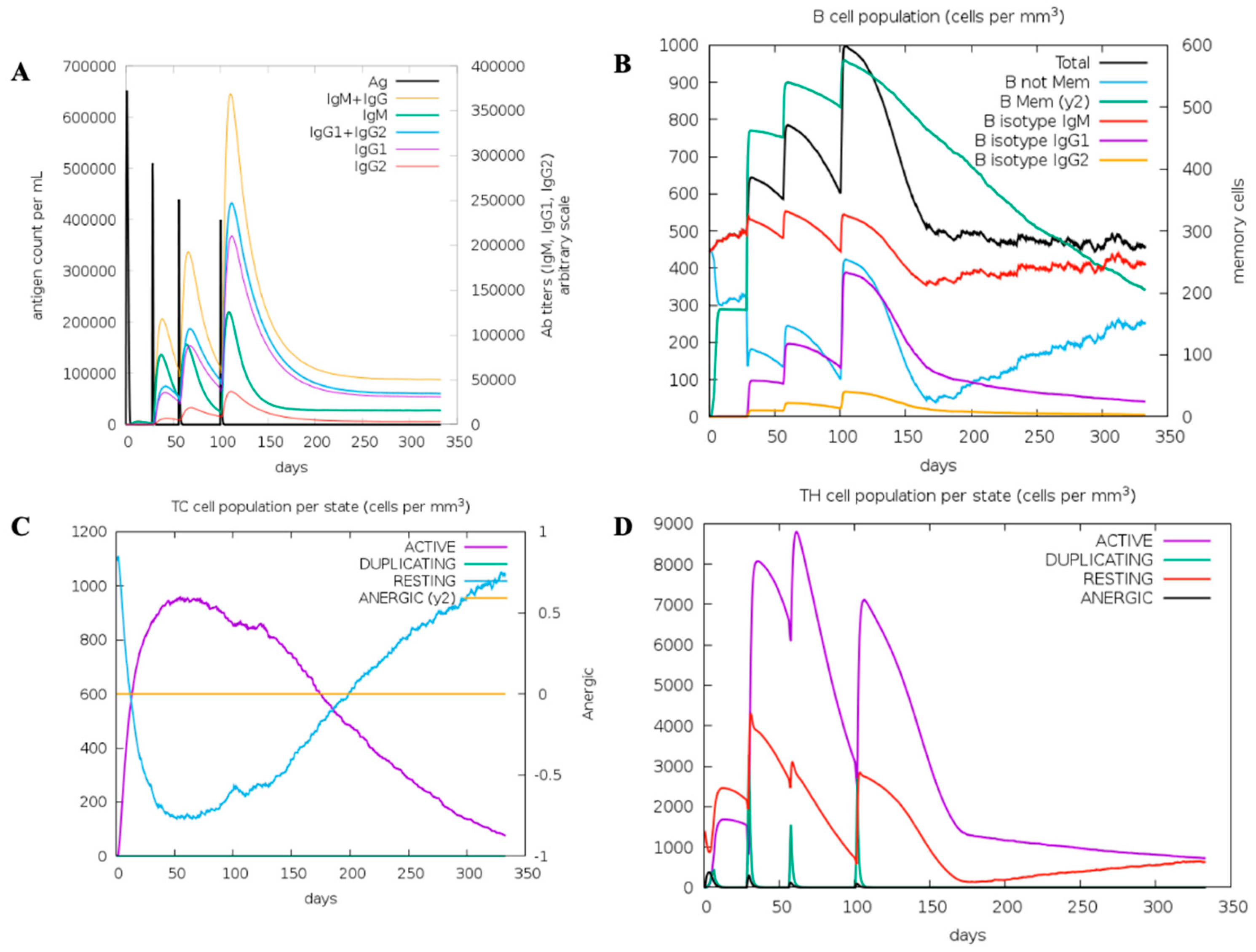 3.4. In Silico Immune Simulation of MCV