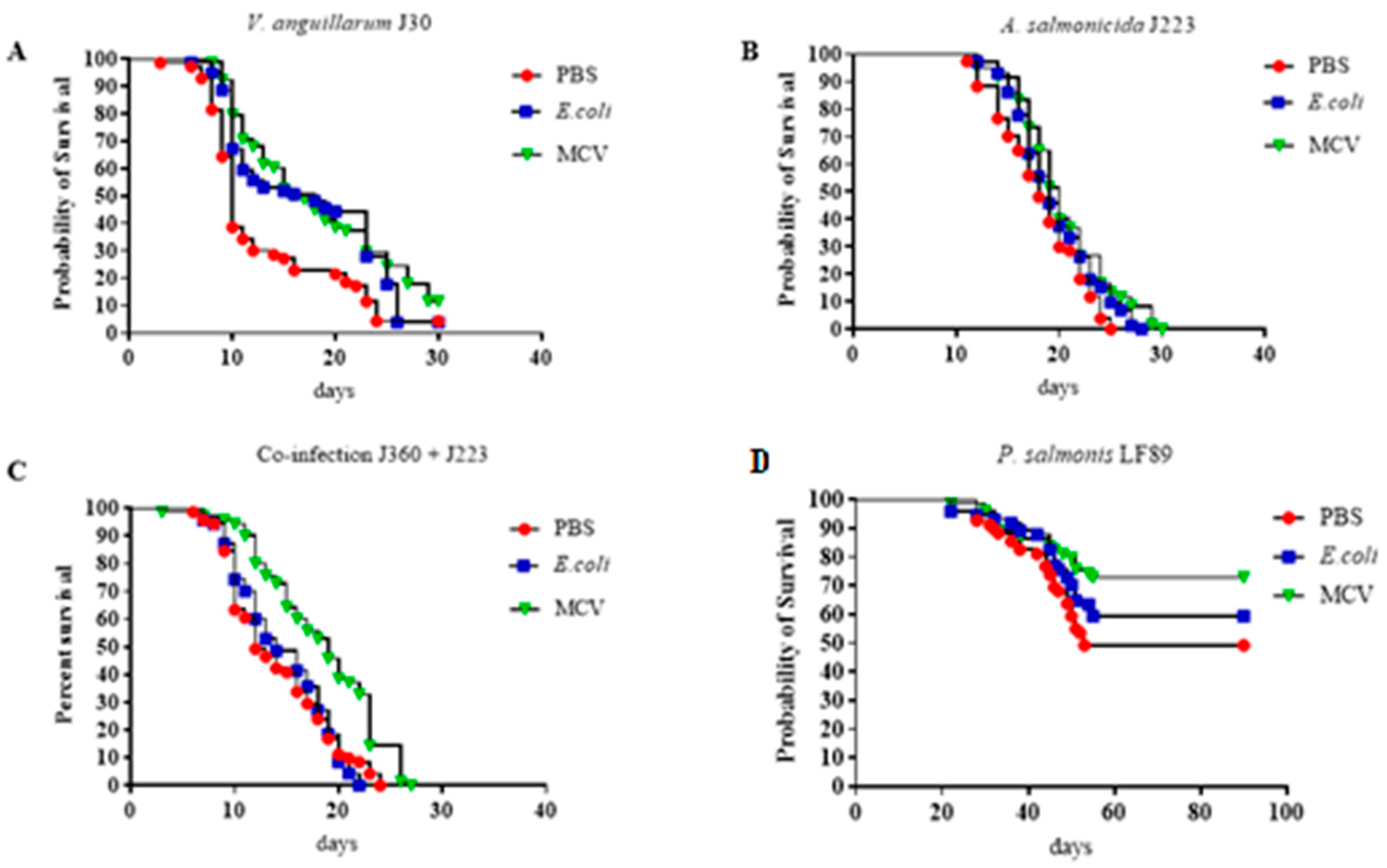 - Chukwu-Osazuwa, J.; Cao, T.; Vasquez, I.; Gnanagobal, H.; Hossain, A.; Dang, M.; Onireti, O.; Hall, J.R.; Santander, J. Experimental co-infection of lumpfish with sublethal doses of Aeromonas salmonicida and Vibrio anguillarum causes increased mortality. Aquaculture 2025, 609, 742952. [Google Scholar] [CrossRef]