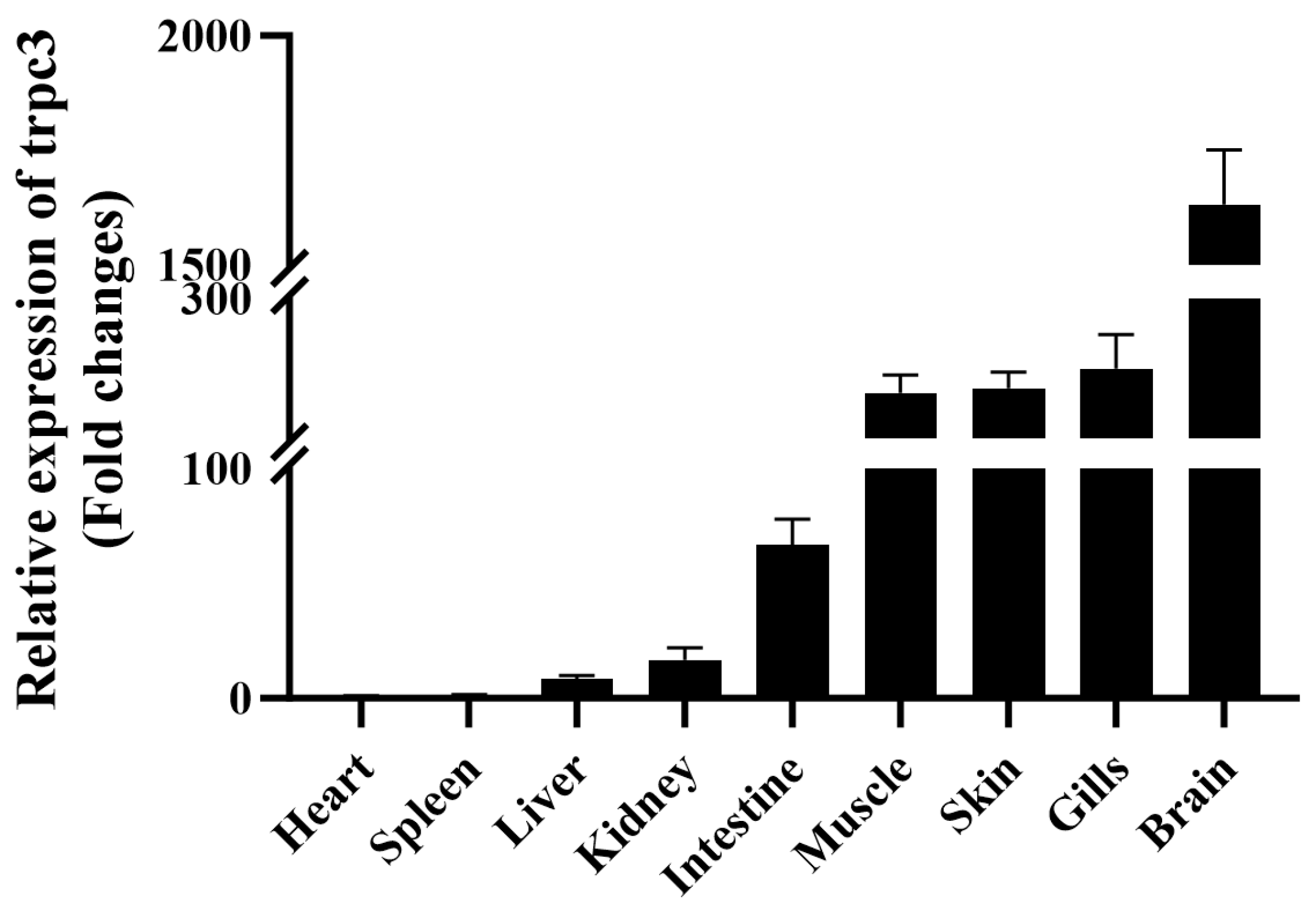 3.2. Tissue Expression Distribution of Grass Carp trpc3 mRNA
