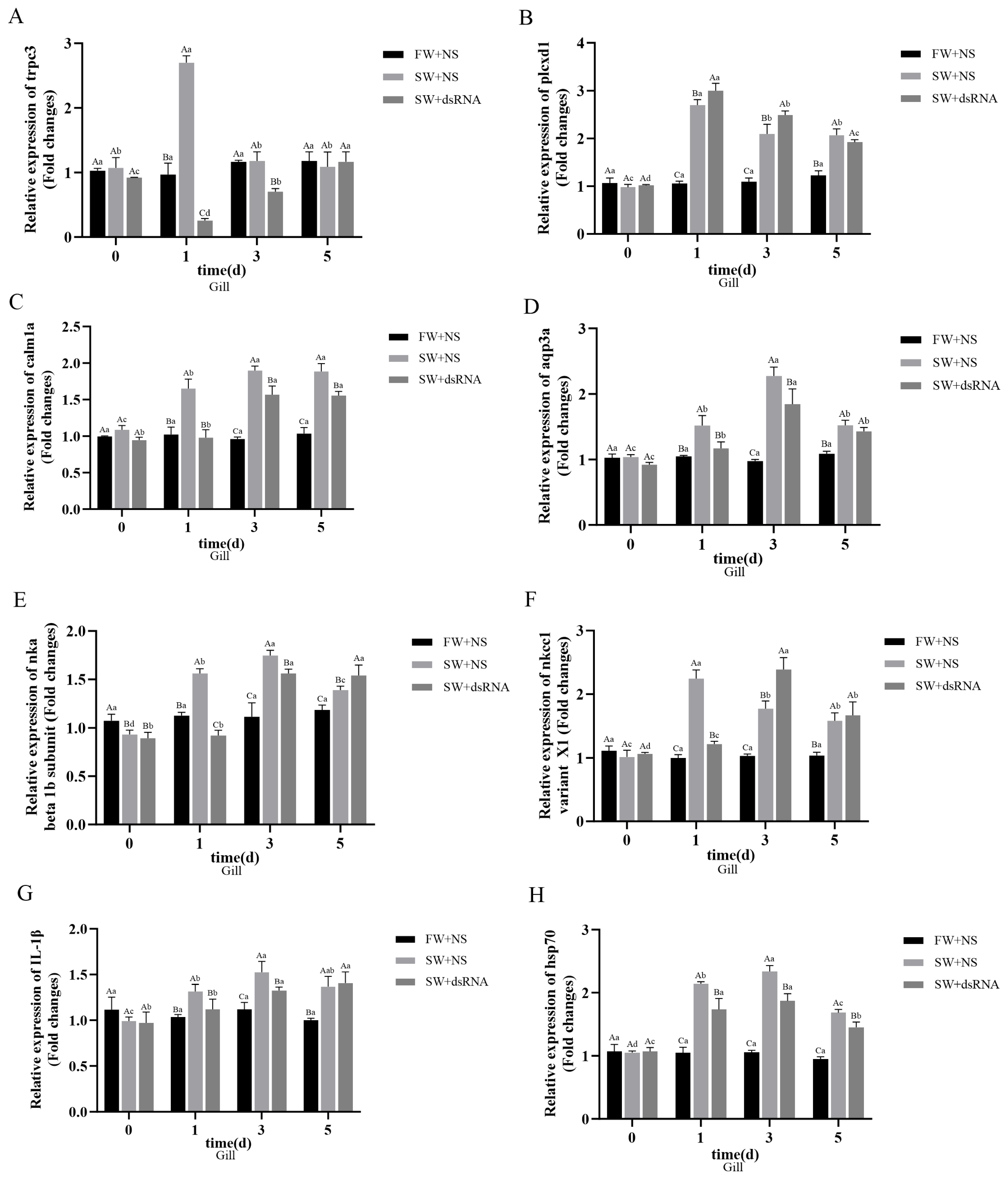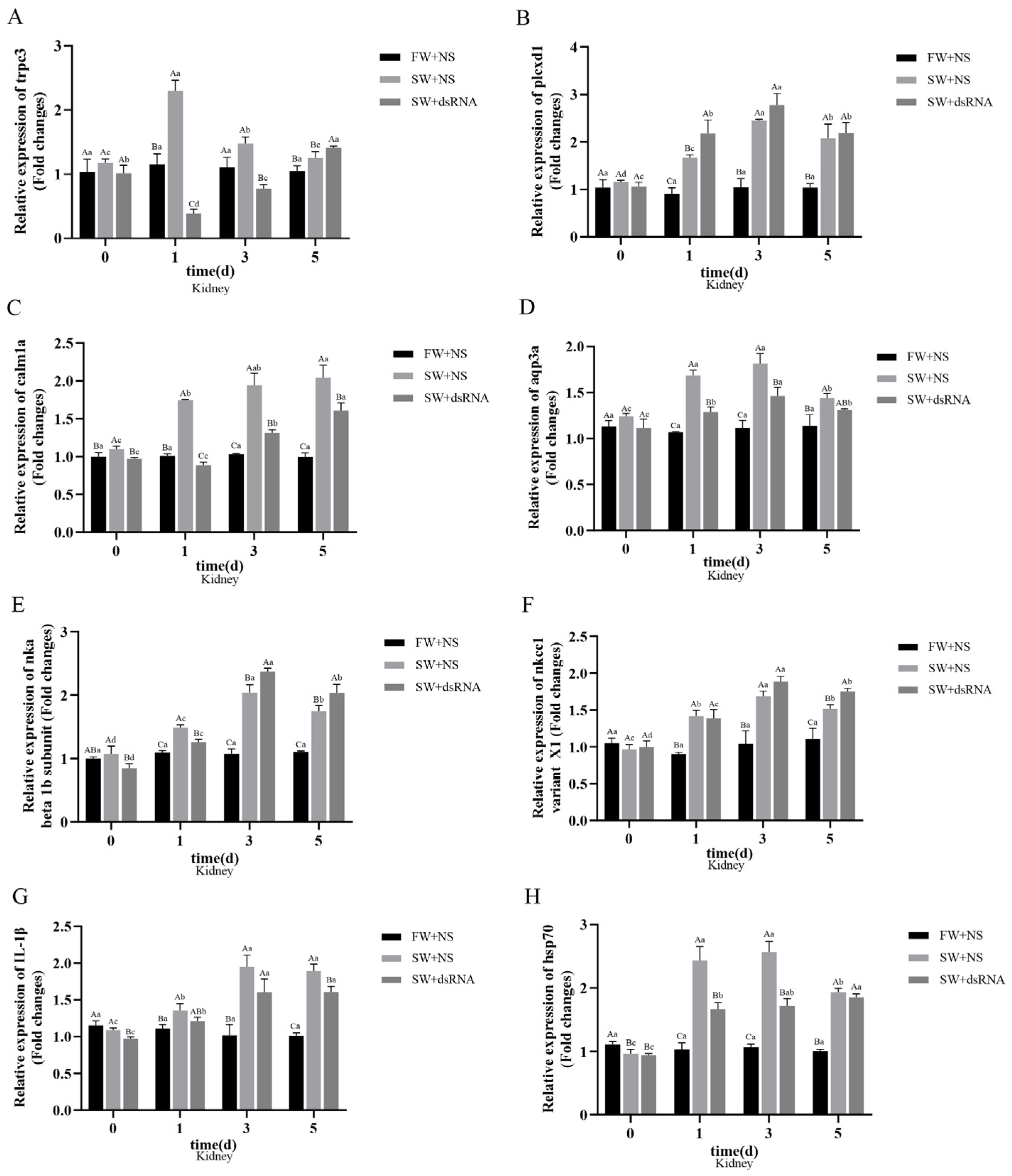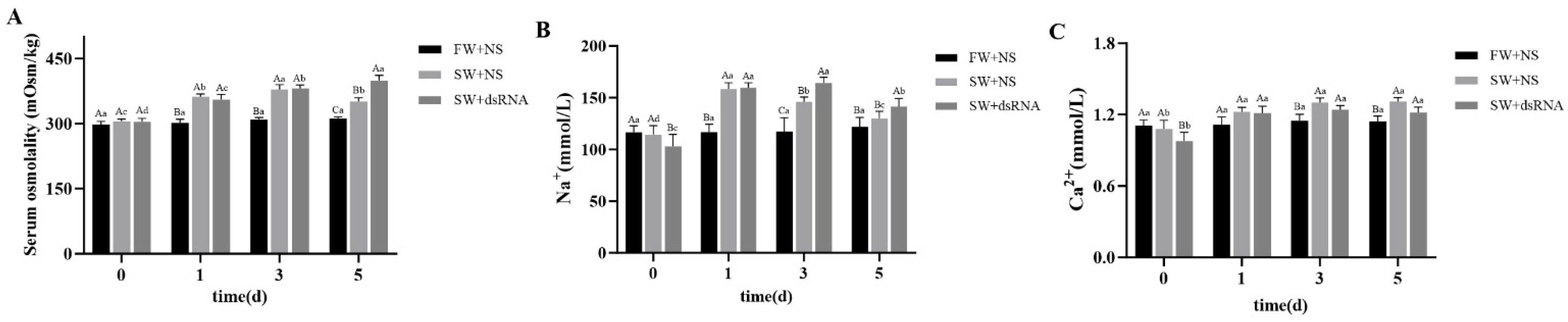 2.4.3. trpc3-dsRNA Interference Experiment in Grass Carp Under Acute Salt Stress