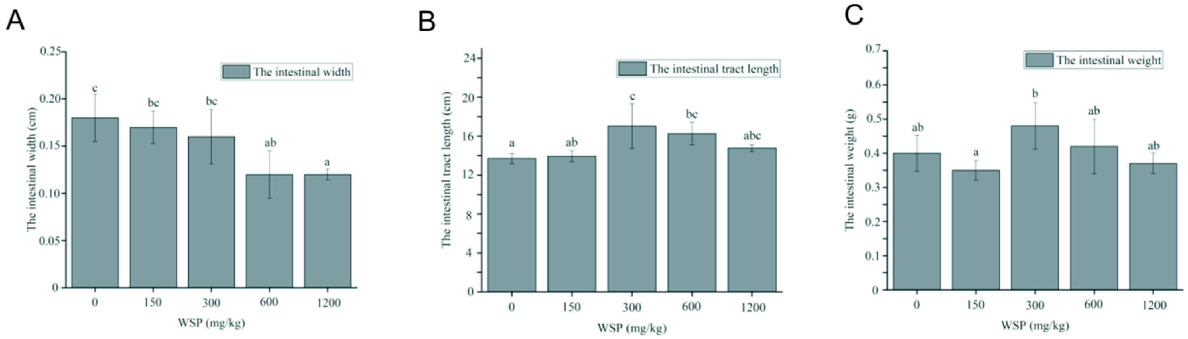 3.3.1. Effect of Dietary WSP on Intestinal Histology