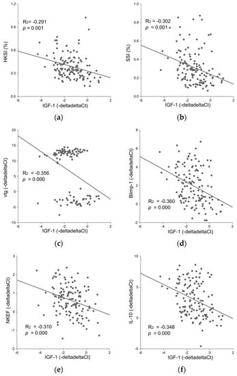 | Liver IGF-1 mRNA (-ddCt) | Correlation | 0.458 * | −0.291 * | −0.11 | −0.10 | −0.302 * | 1.00 | −0.356 * | −0.310 * | −0.360 * | −0.10 | −0.348 * |
