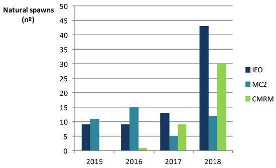 Total number of natural spawns from the three Galician broodstock (IEO, MC2 and CMRM) during 2015–2018.