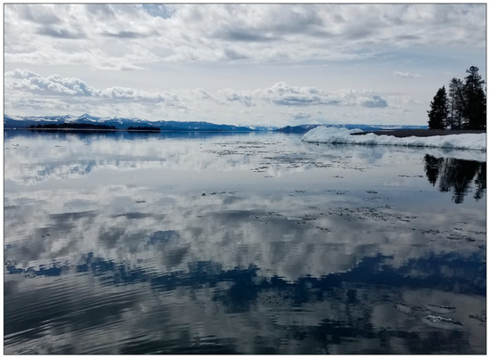 Yellowstone Lake in Yellowstone National Park on 26 May 2019. Yellowstone Lake is the largest alpine (above 2000 m) lake in North America and has a surface area of 34,000 ha, 239 km of shoreline, mean depth of 48 m, maximum depth of 137 m, and volume of 1.5 × 1010 m3 [38,39].