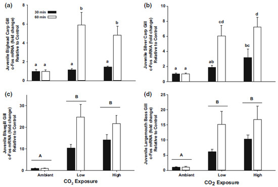 - Dennis, C.E.; Adhikari, S.; Wright, A.W.; Suski, C.D.; Dennis, C.E. Molecular, Behavioral, and Performance Responses of Juvenile Largemouth Bass Acclimated to an Elevated Carbon Dioxide Environment. J. Comp. Physiol. B 2016, 186, 297–311. [Google Scholar] [CrossRef]