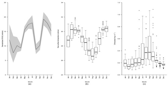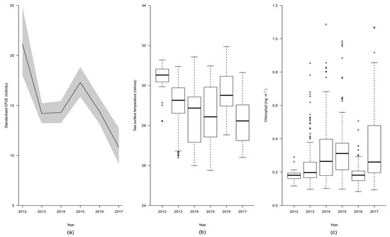 2.2. Distribution and Variation of Standardized Catch per Unit Effort