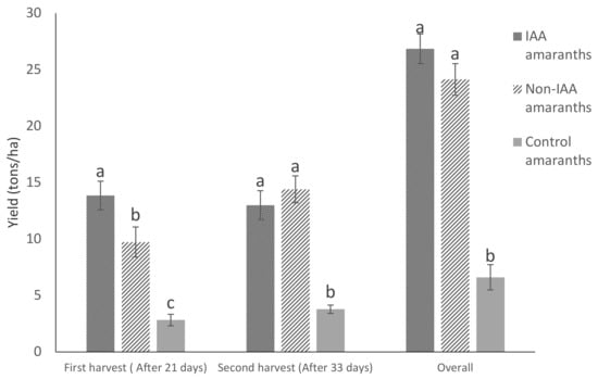 The overall amaranth yields in this study were slightly higher than those reported from a study by Baitilwake et al. [