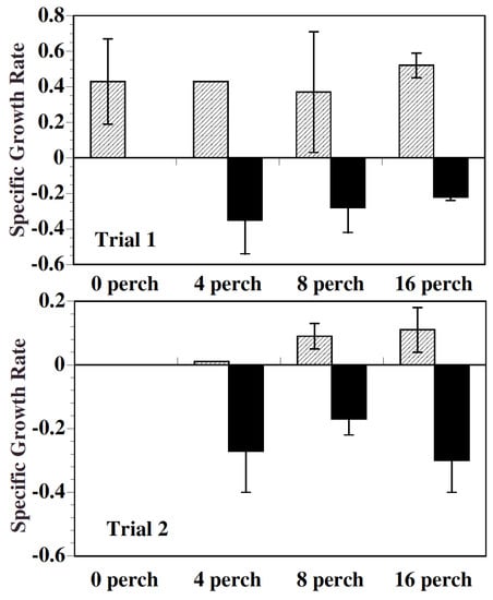 | Perch (g) | 435 ± 12 | 226 ± 30 | 229 ± 25 | 116 ± 10 |