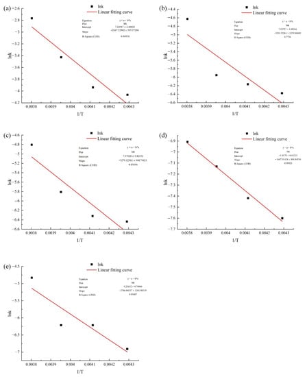 where k0 is the pre-exponential factor; Ea is the activation energy, J/mol; R is the molar gas constant, 8.314 J/(K∙mol); T is the absolute temperature, K.