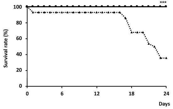 - Livak, K.J.; Schmittgen, T.D. Analysis of relative gene expression data using real-time quantitative PCR and the 2(-Delta Delta C(T)) Method. Methods 2001, 25, 402–408. [Google Scholar] [CrossRef] [PubMed]
