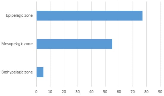 Number of fish species in each depth zone of the Adriatic Sea pelagic environment.