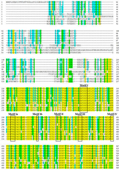 Multiple alignment of Rcvasa deduced amino acid sequences. The framed regions indicate the eight conserved functional motifs.
