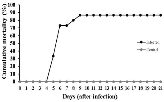 - Skliris, G.P.; Richards, R.H. Induction of nodavirus disease in seabass, Dicentrarchus labrax, using different infection models. Virus Res. 1999, 63, 85–93. [Google Scholar] [CrossRef]