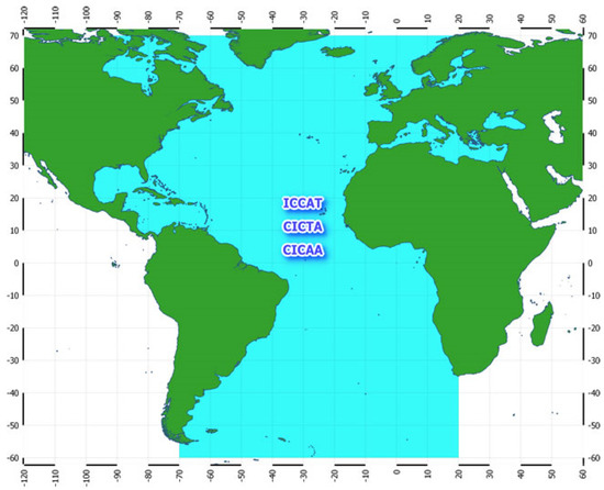 Convention Area of the ICCAT. Reproduced from [24], with permission from International Commission for the Conservation of Atlantic Tunas, 2022.