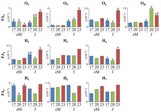- Somarakis, S.; Kostikas, I.; Peristeraki, N.; Tsimenides, N. Fluctuating asymmetry in the otoliths of larval anchovy Engraulis encrasicolus and the use of developmental instability as an indicator of condition in larval fish. Mar. Ecol. Prog. Ser. 1997, 151, 191–203. [Google Scholar] [CrossRef]
