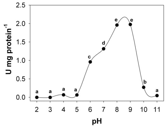 3.1. Temperature and pH Optimum and Stability